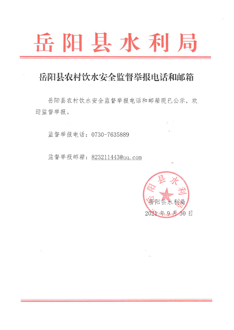 嶽陽縣農村飲水安全監督舉報電話和郵箱公示