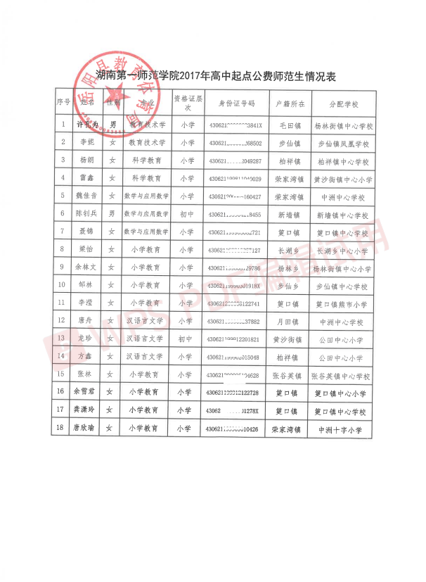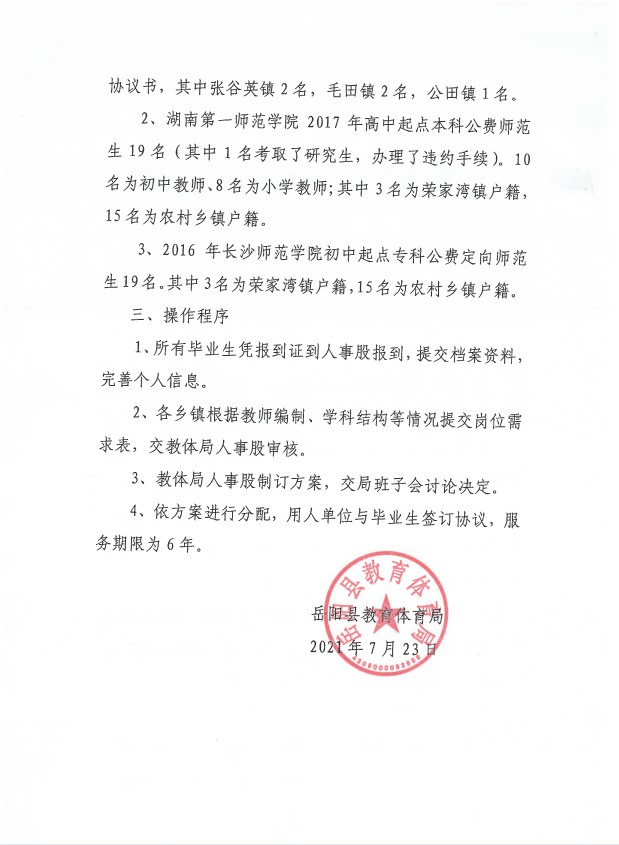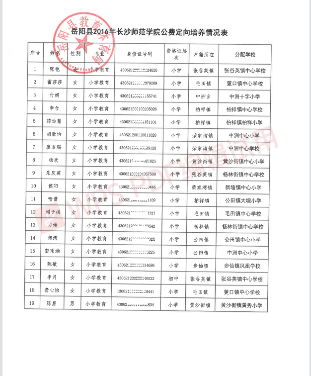 現將嶽陽縣2021年公費定向培養師範生分配情況予以公示,接受社會、群眾監督。