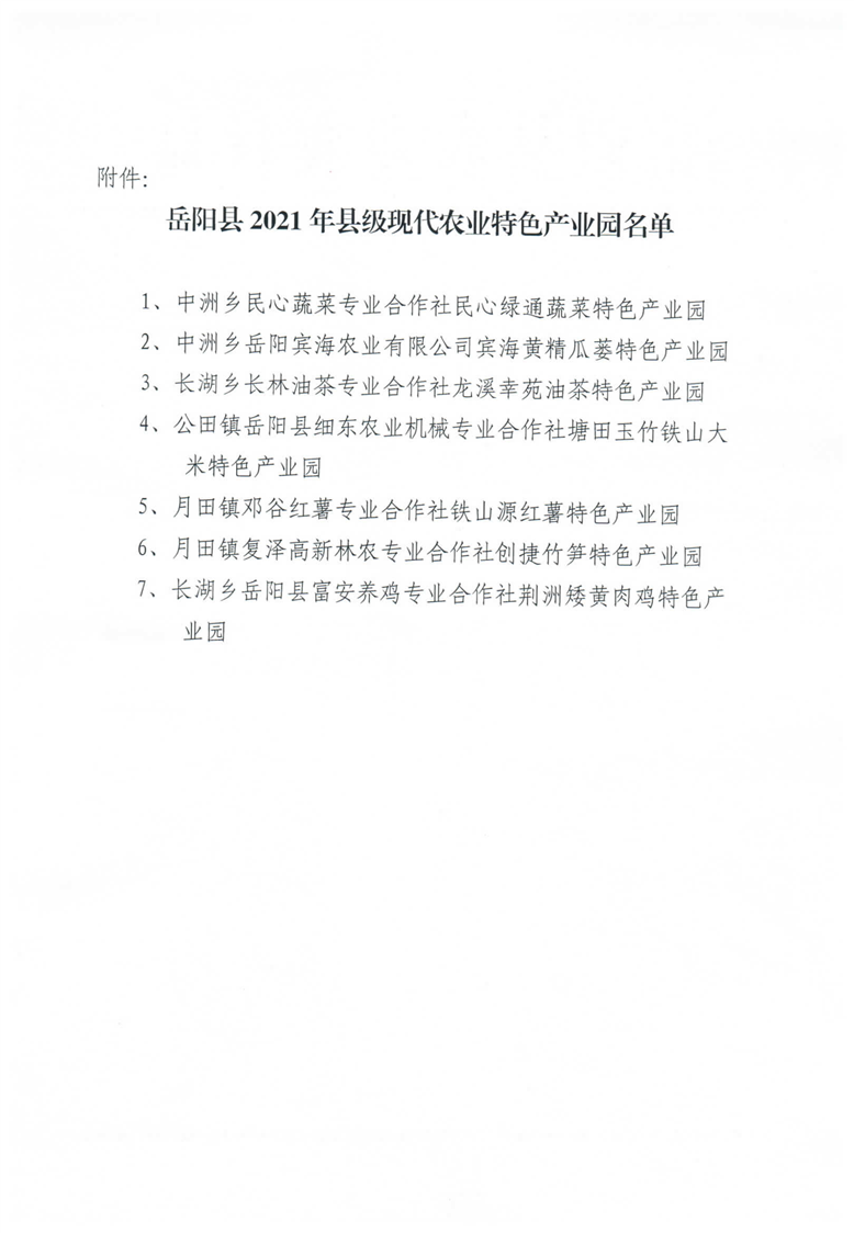 認定嶽陽縣2021年縣級現代農業特色產業園的通知