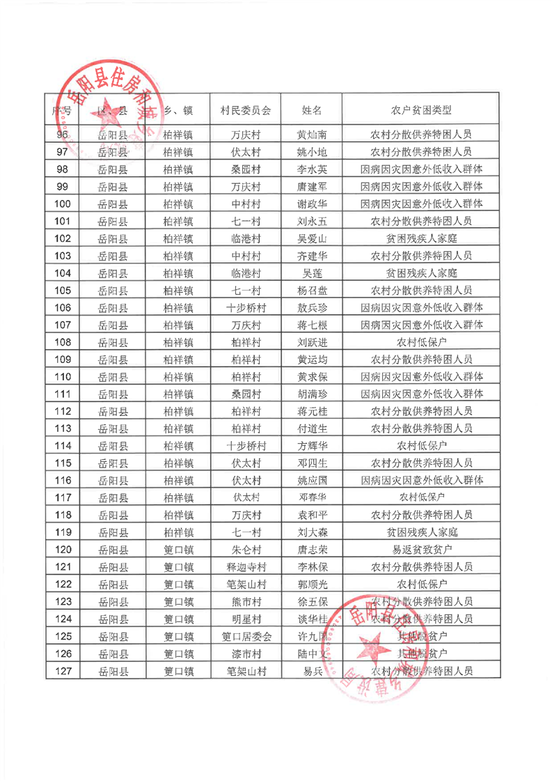 嶽陽縣2021年農村危房改造對象公示