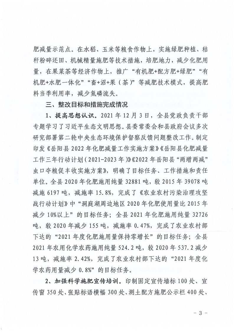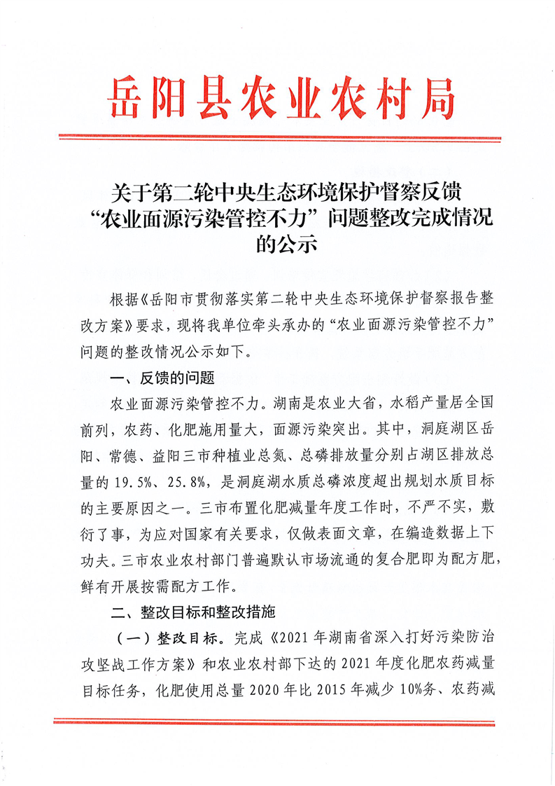 關於第二輪中央生態環境保護督察反饋“農業麵源汙染管控不力”問題整改完成情況的公示