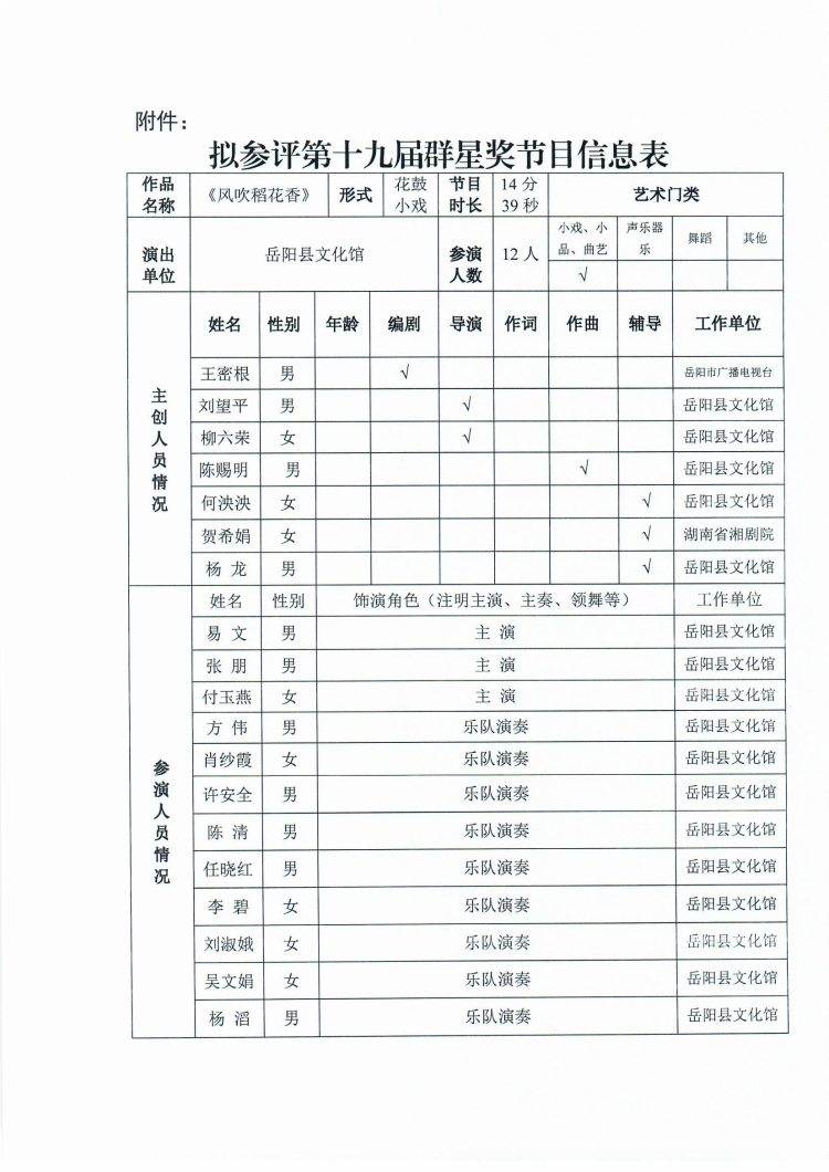 關於對擬參加第十九屆群星獎參賽作品的公示