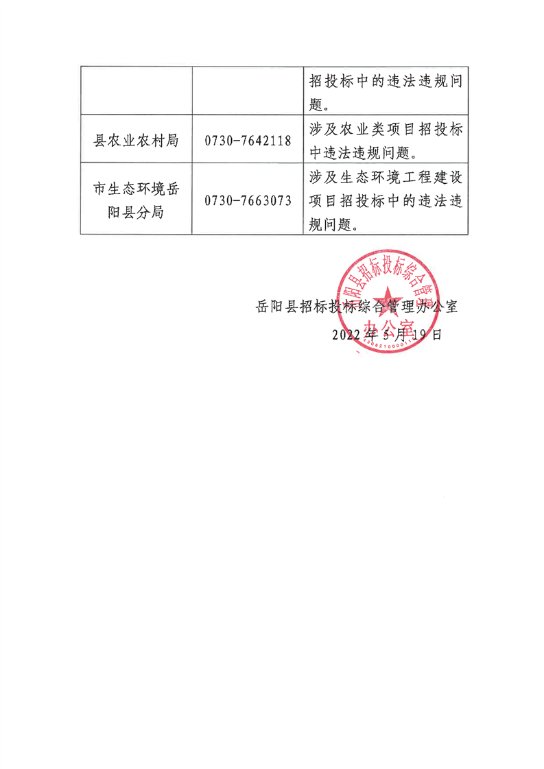 關於公布嶽陽縣政府性投資工程建設項目“招投標”投訴受理方式的公告