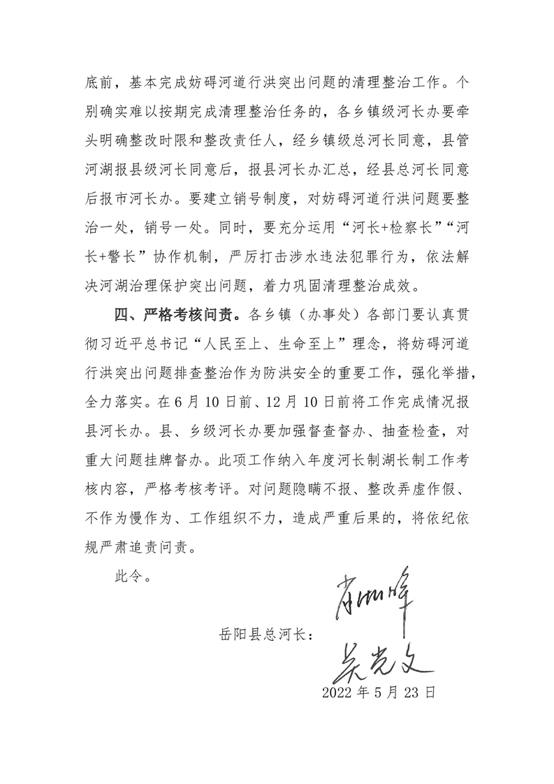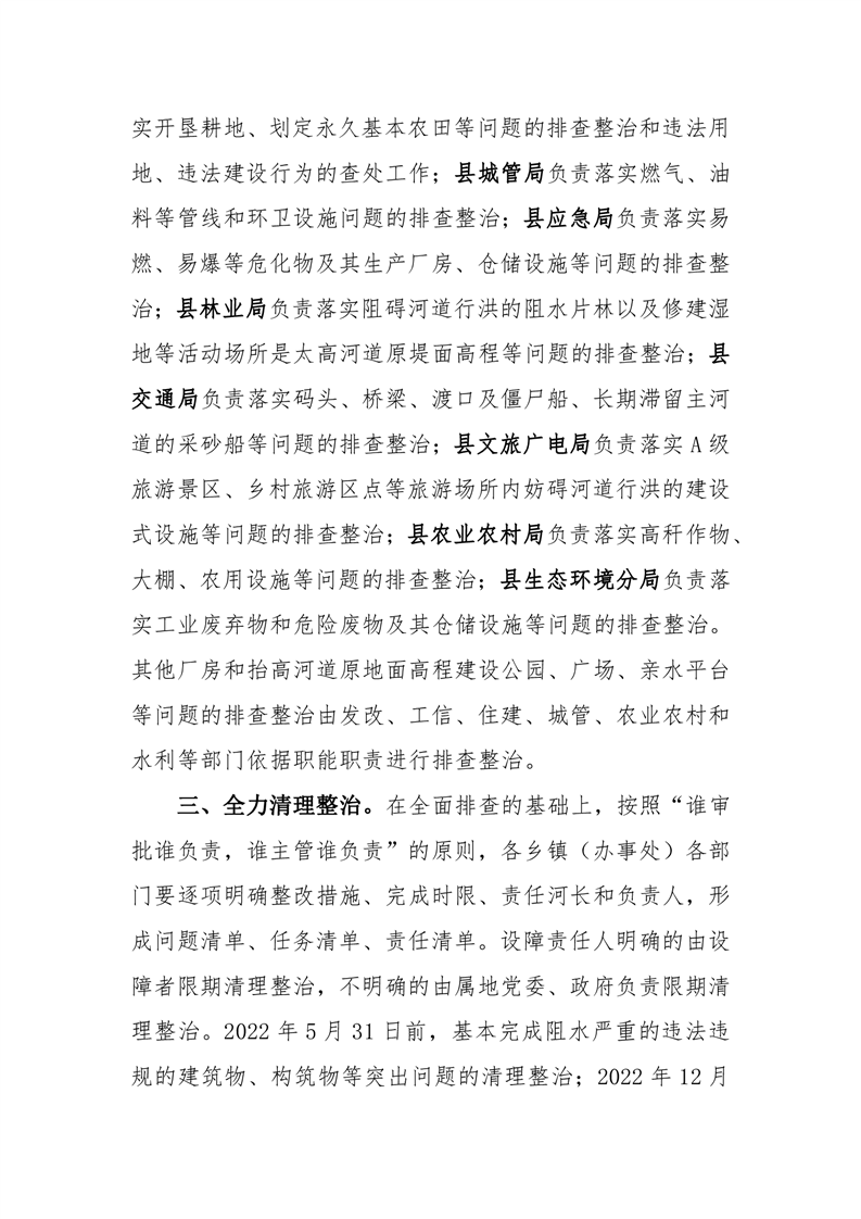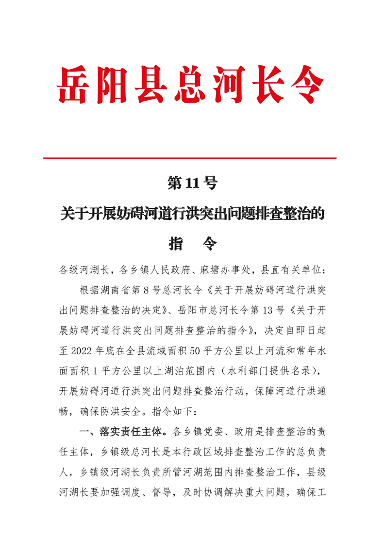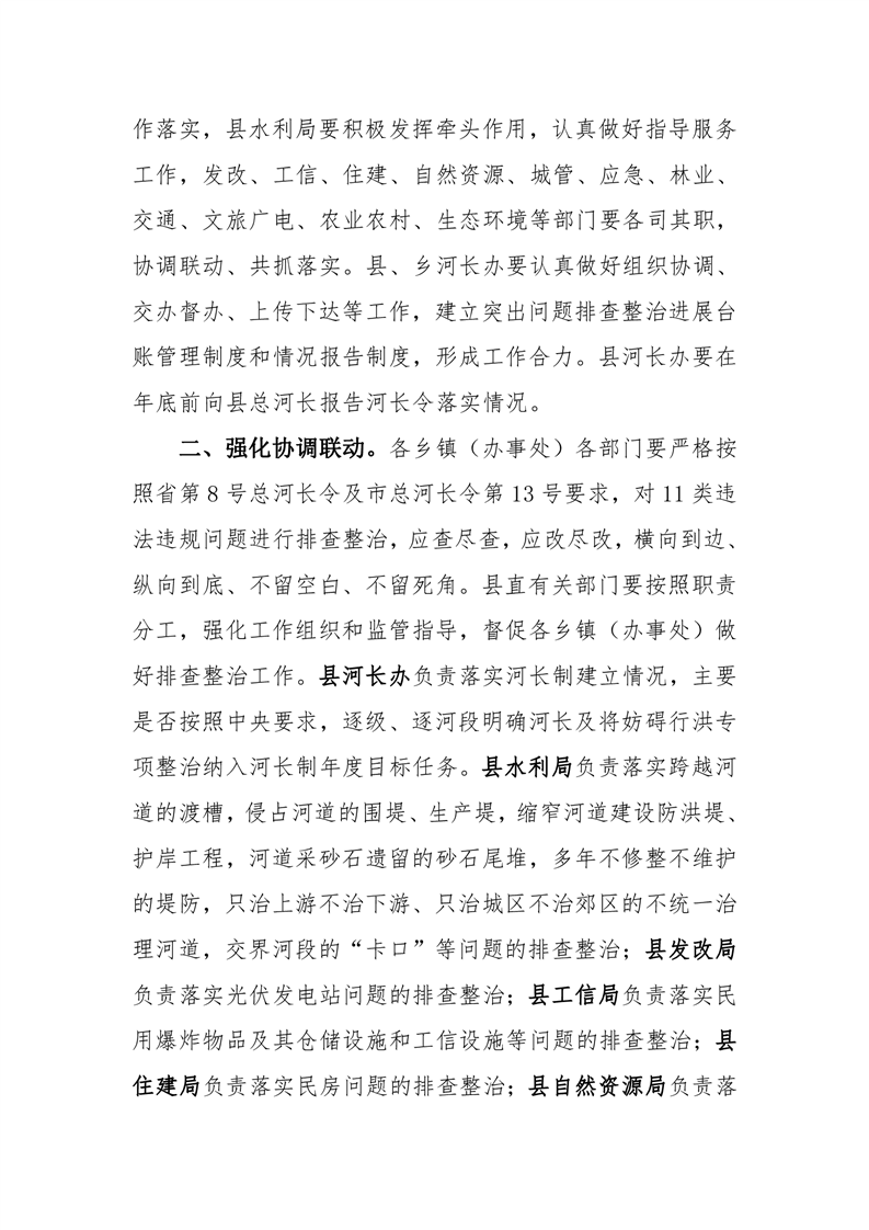 關於開展妨礙河道行洪突出問題排查整治的 指 令