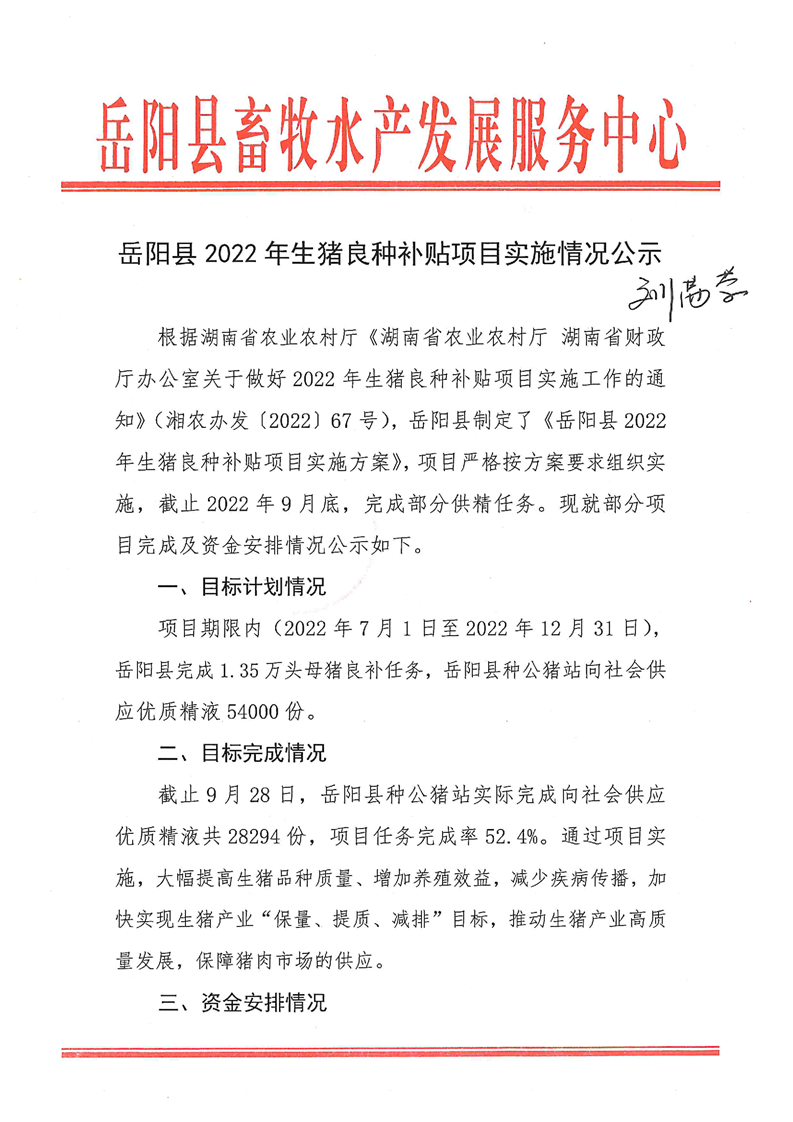 嶽陽縣2022年生豬良種補貼項目實施情況公示