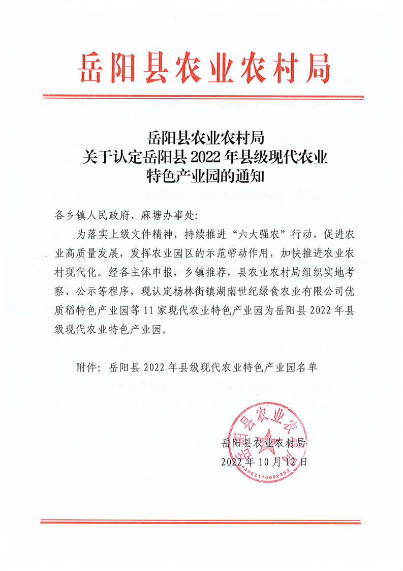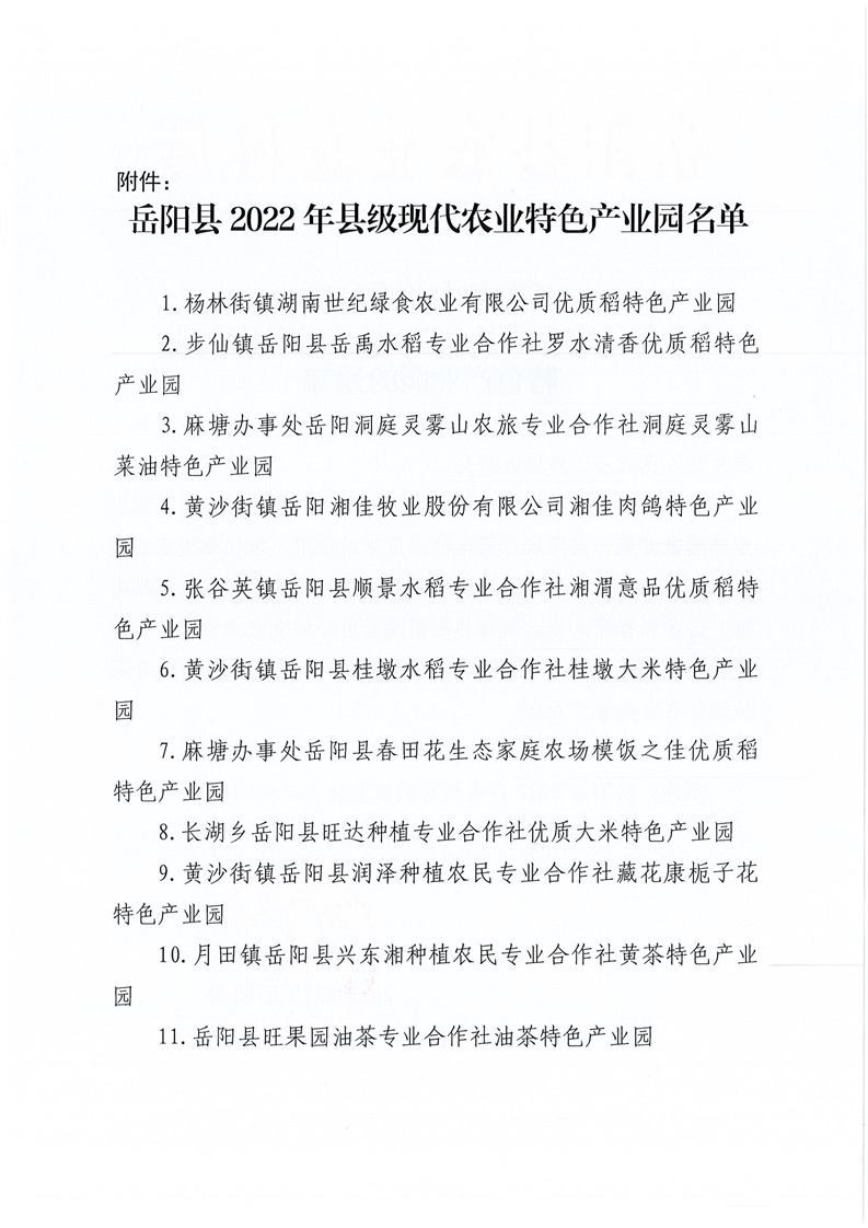 嶽陽縣農業農村局關於認定嶽陽縣2022年縣級現代農業特色產業園的通知