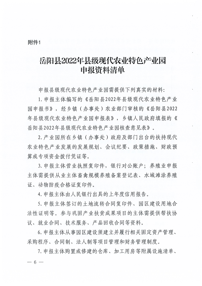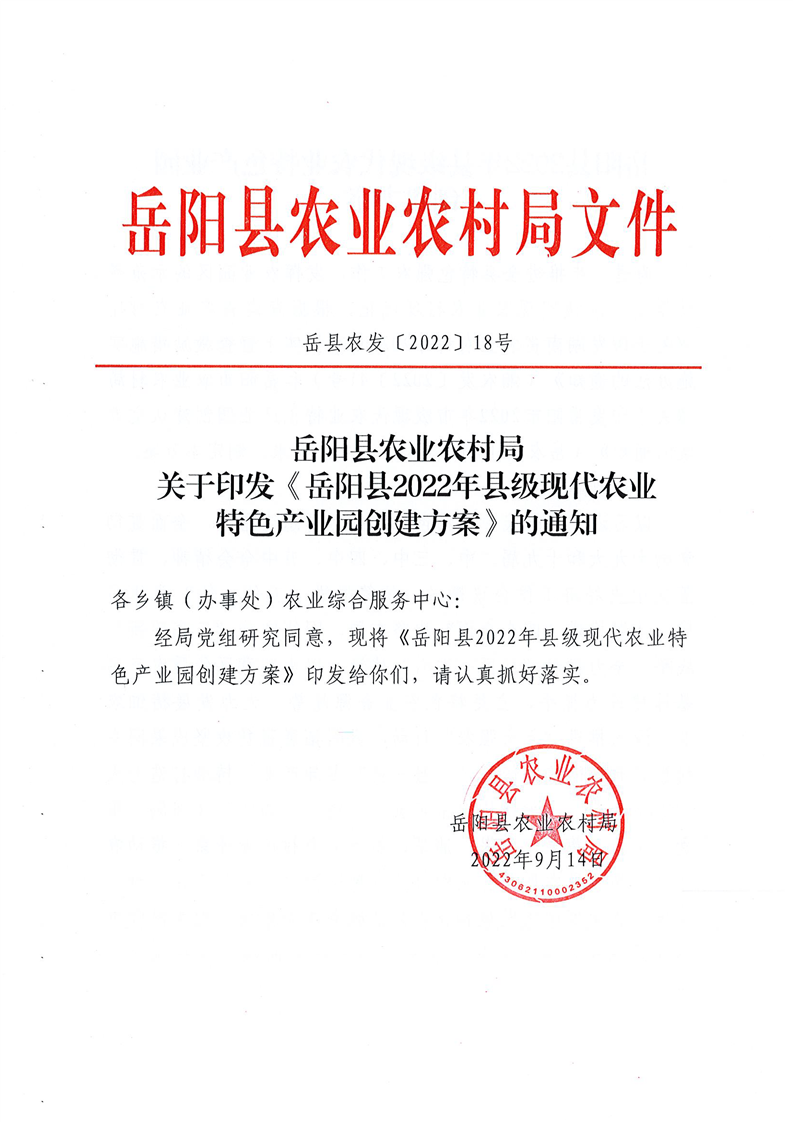 嶽陽縣2022年縣級現代農業特色產業園創建方案