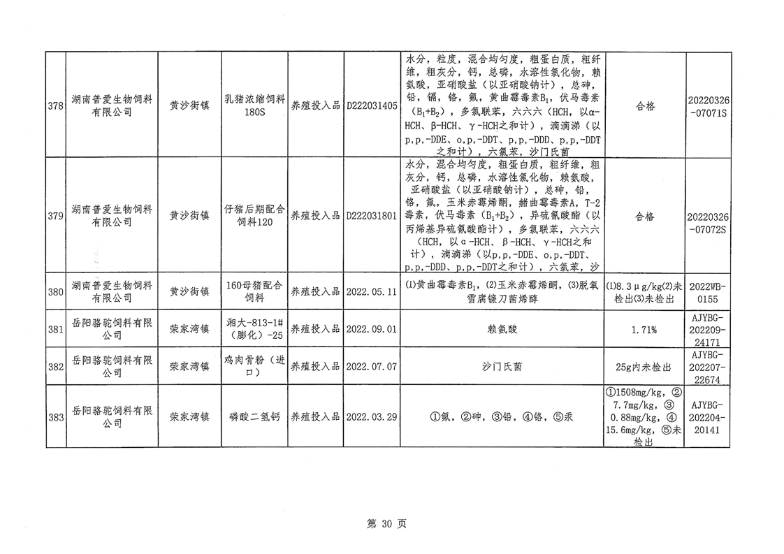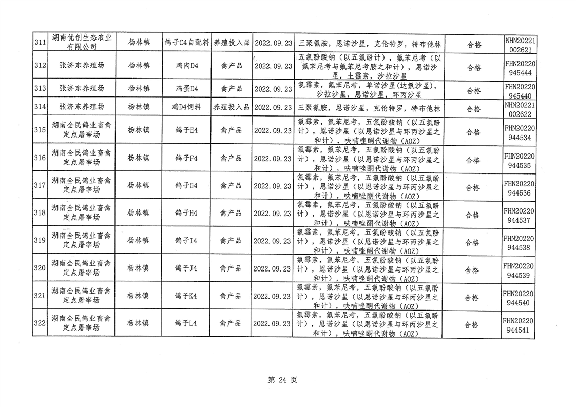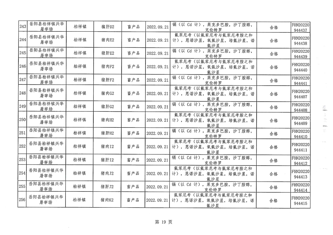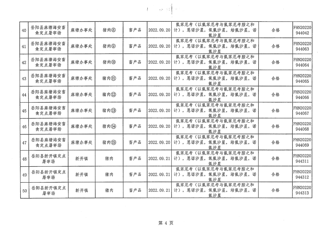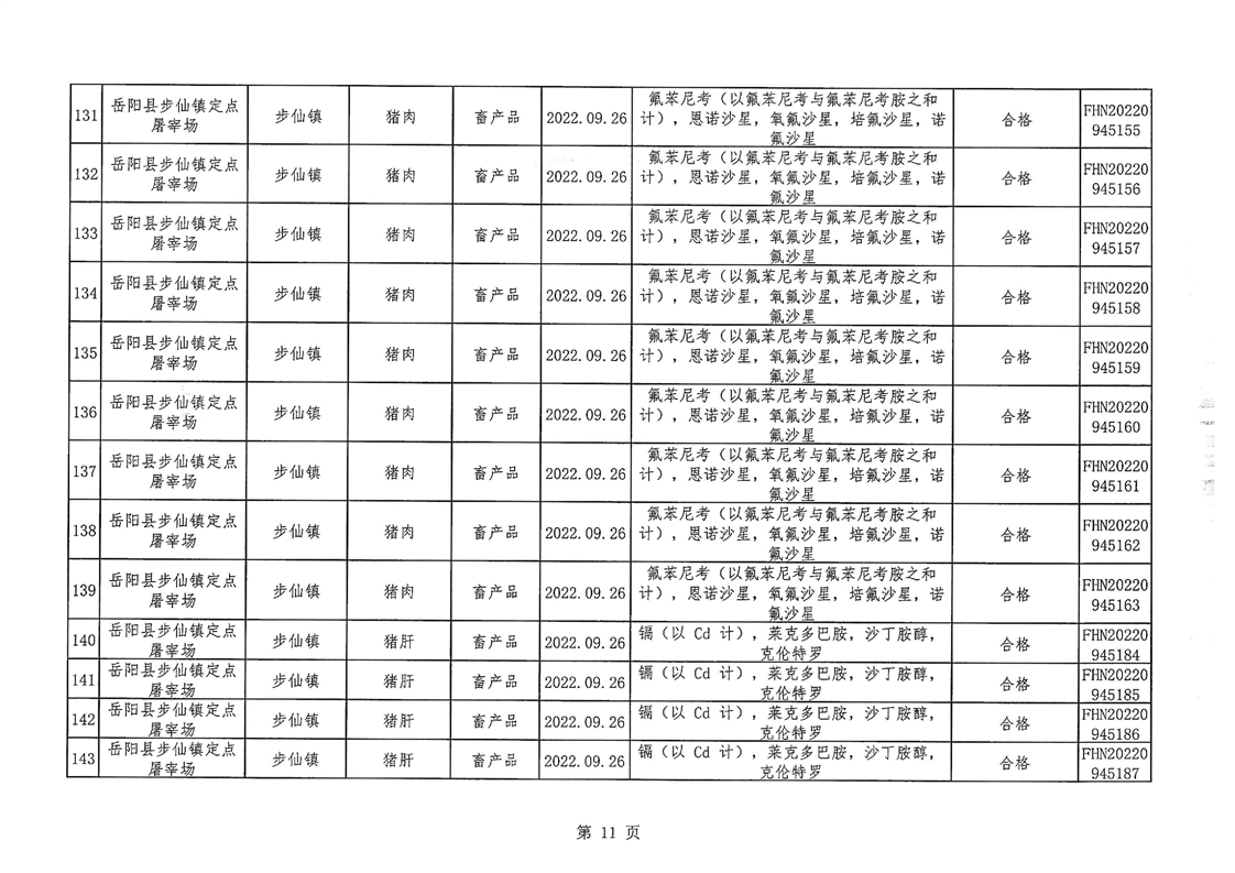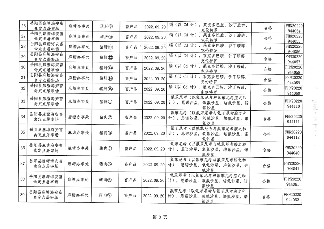2022年嶽陽縣畜禽水產品、養殖投入品質量安全監測信息公示明細表