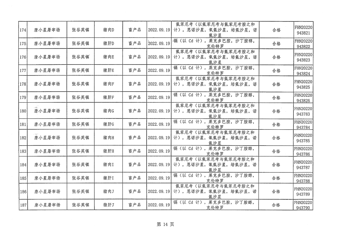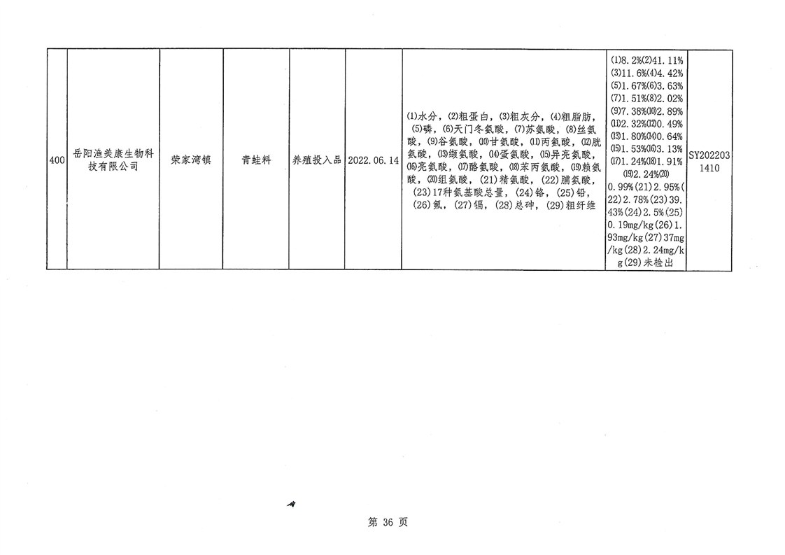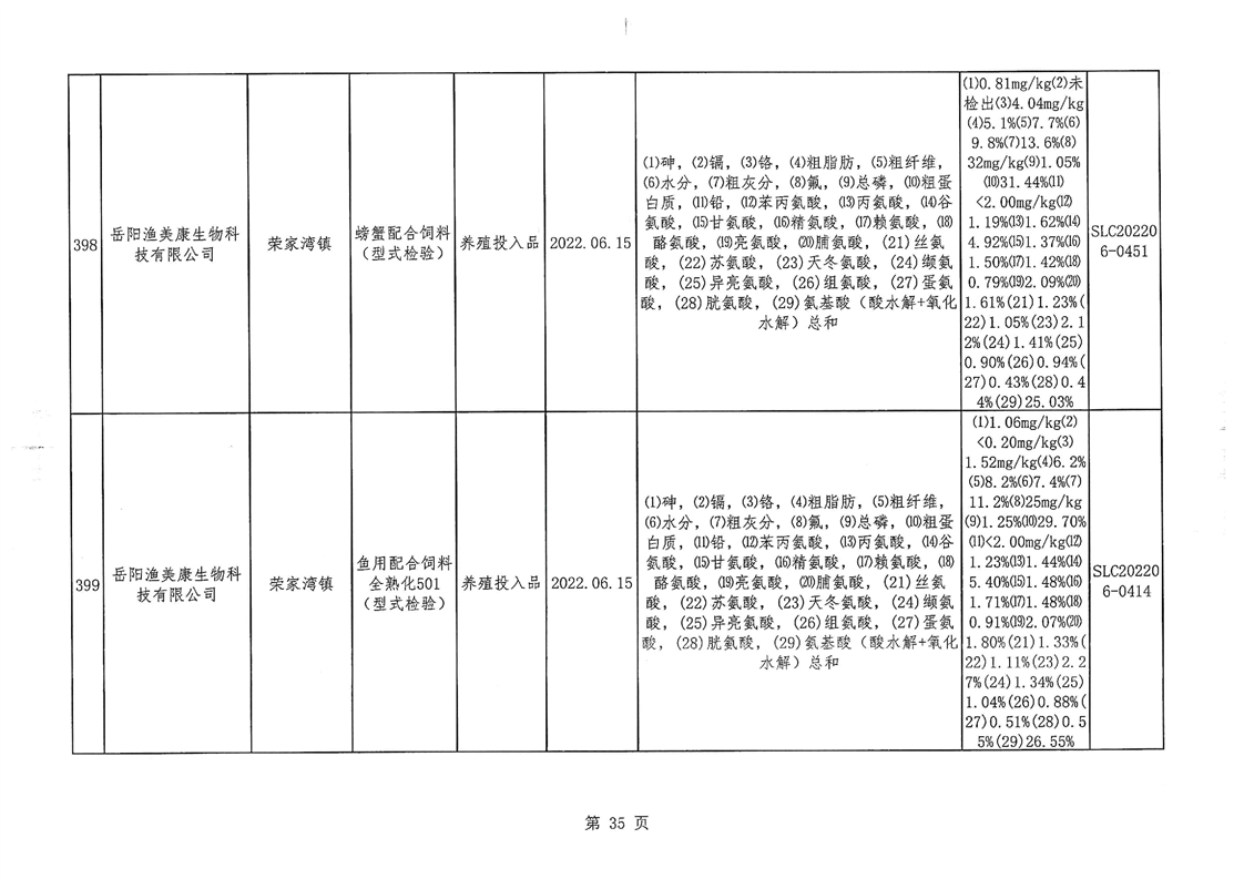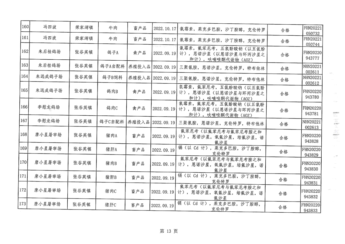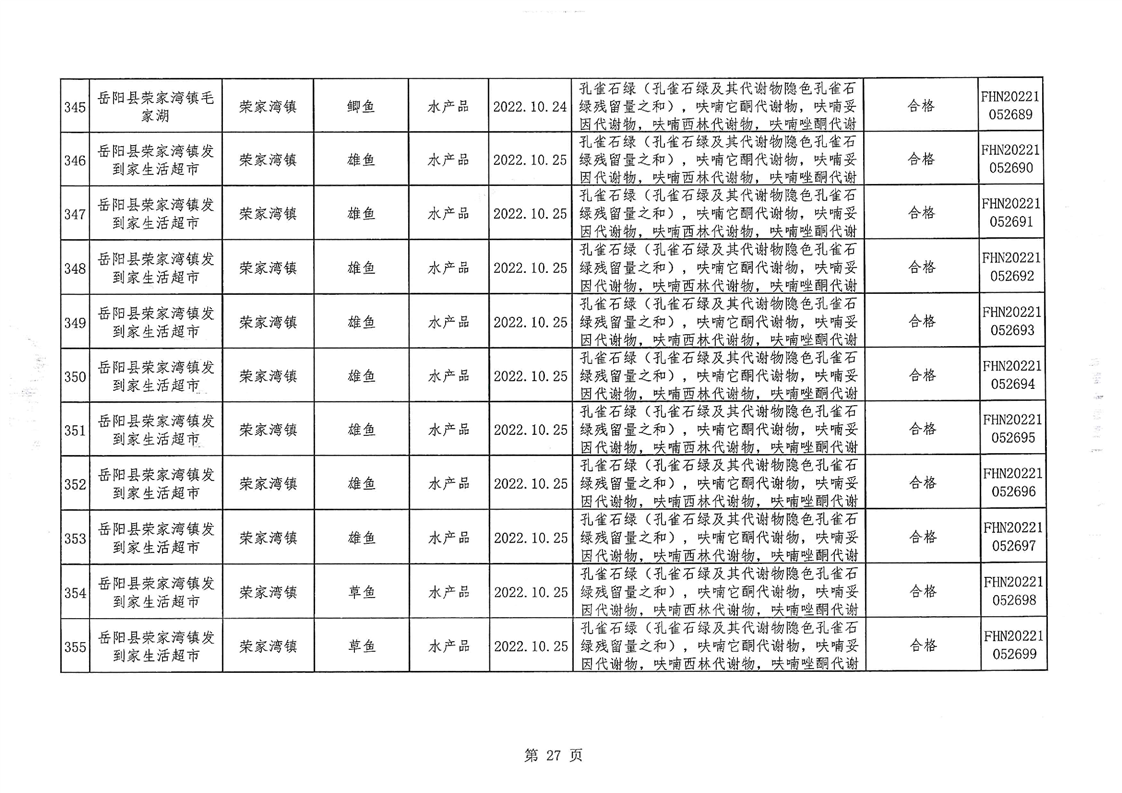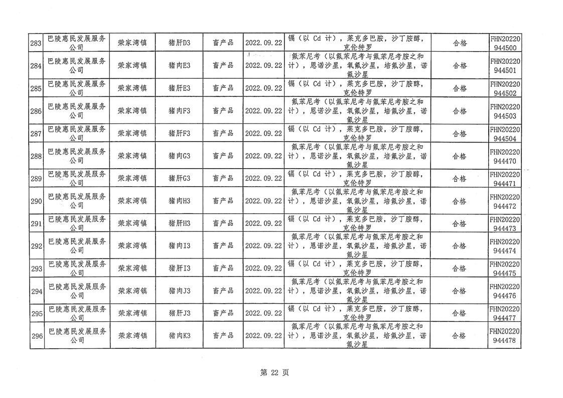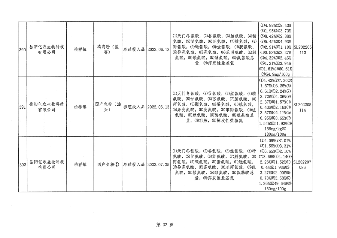 2022年嶽陽縣畜禽水產品、養殖投入品質量安全監測信息公示明細表