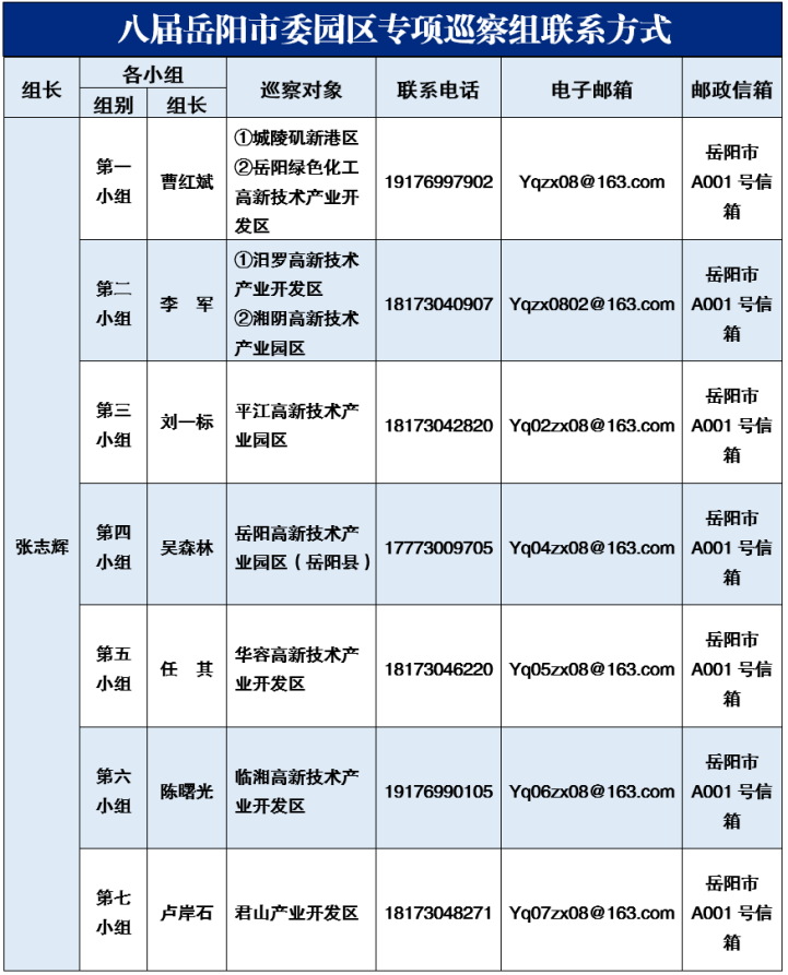 附件:《八屆嶽陽市委園區專項巡察組聯係方式》
