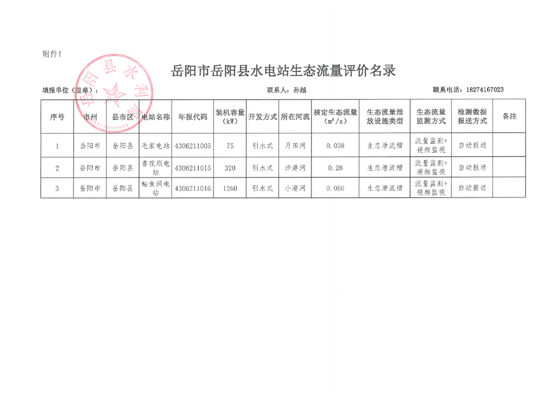 嶽陽市嶽陽縣水電站生態流量評級名錄公示
