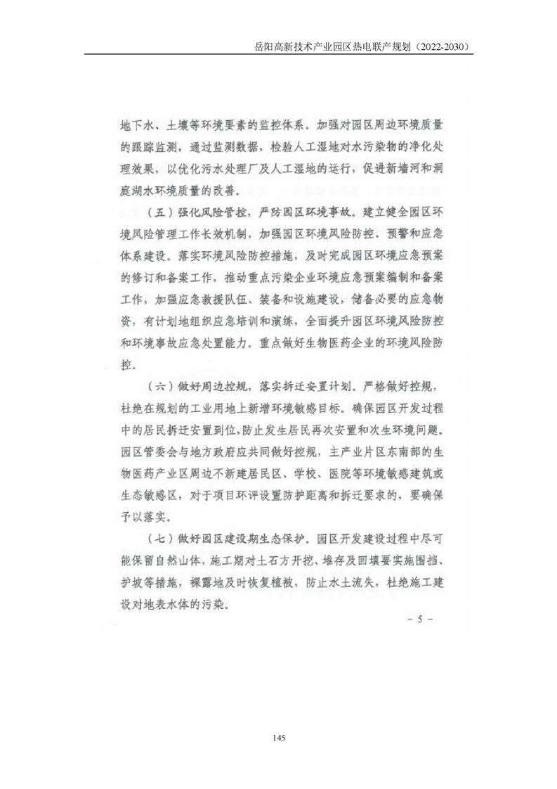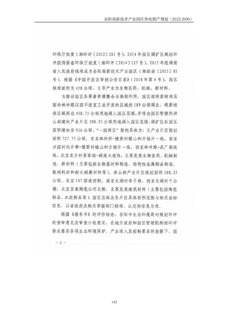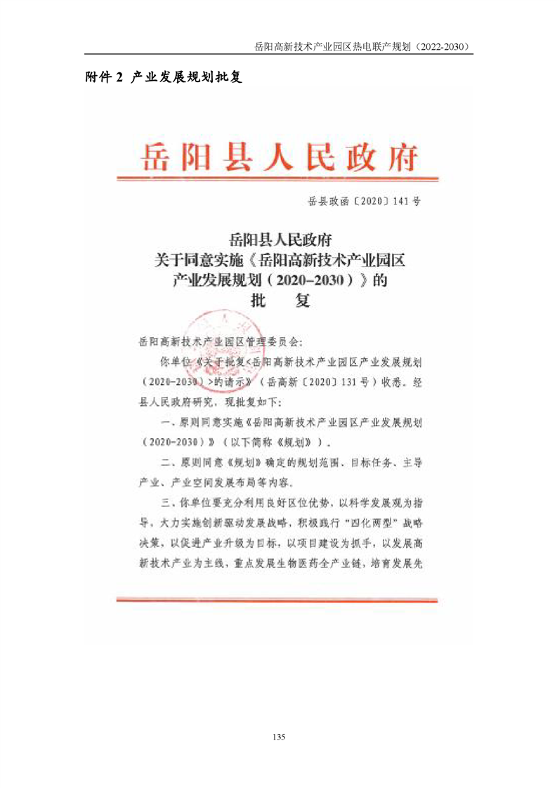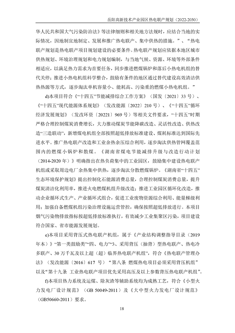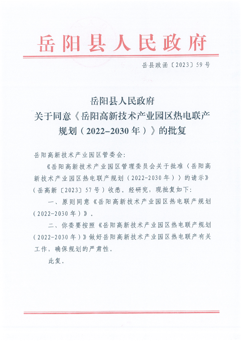 【批後公布】《嶽陽高新技術產業園熱電聯產規劃(2022-2023年)》