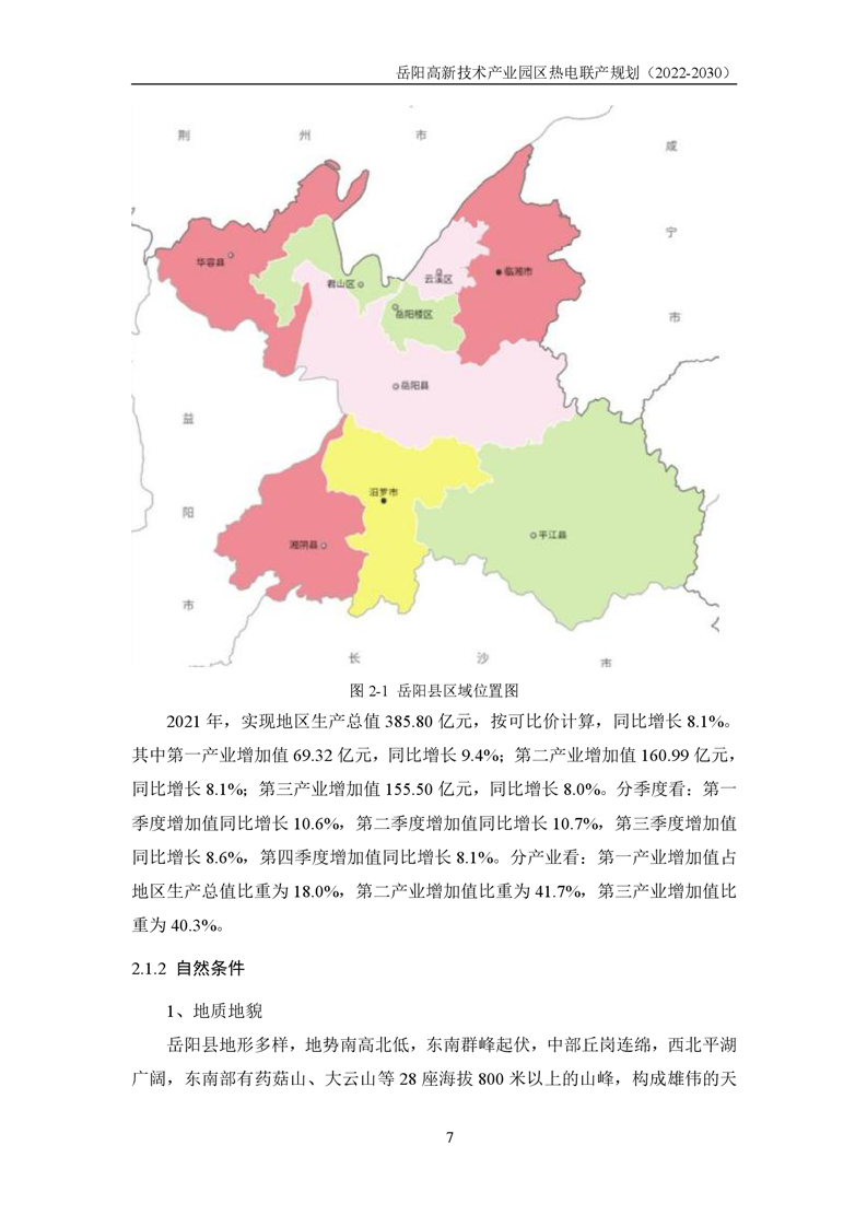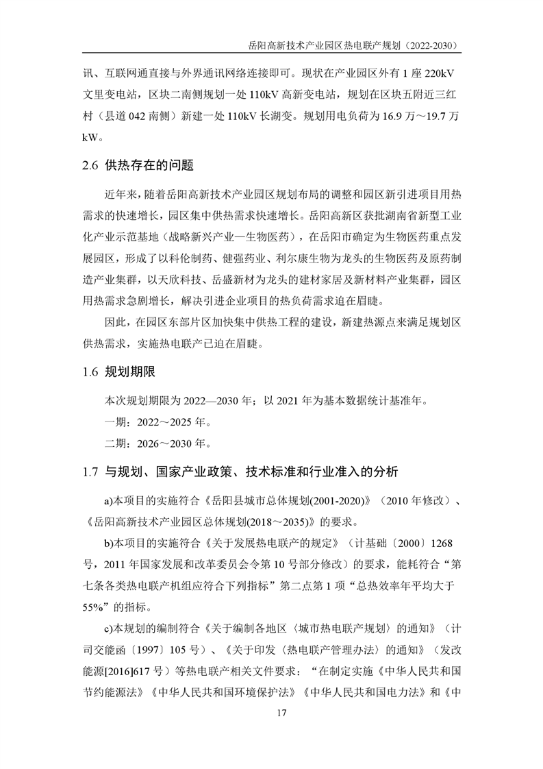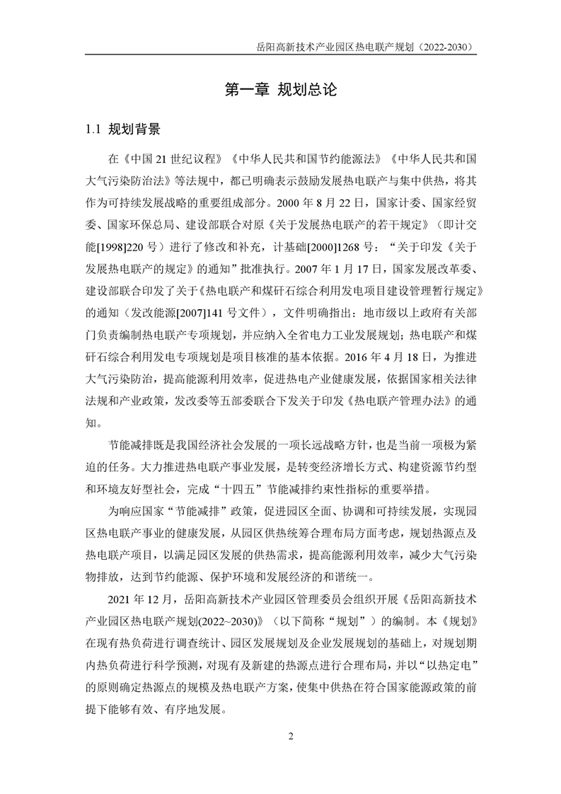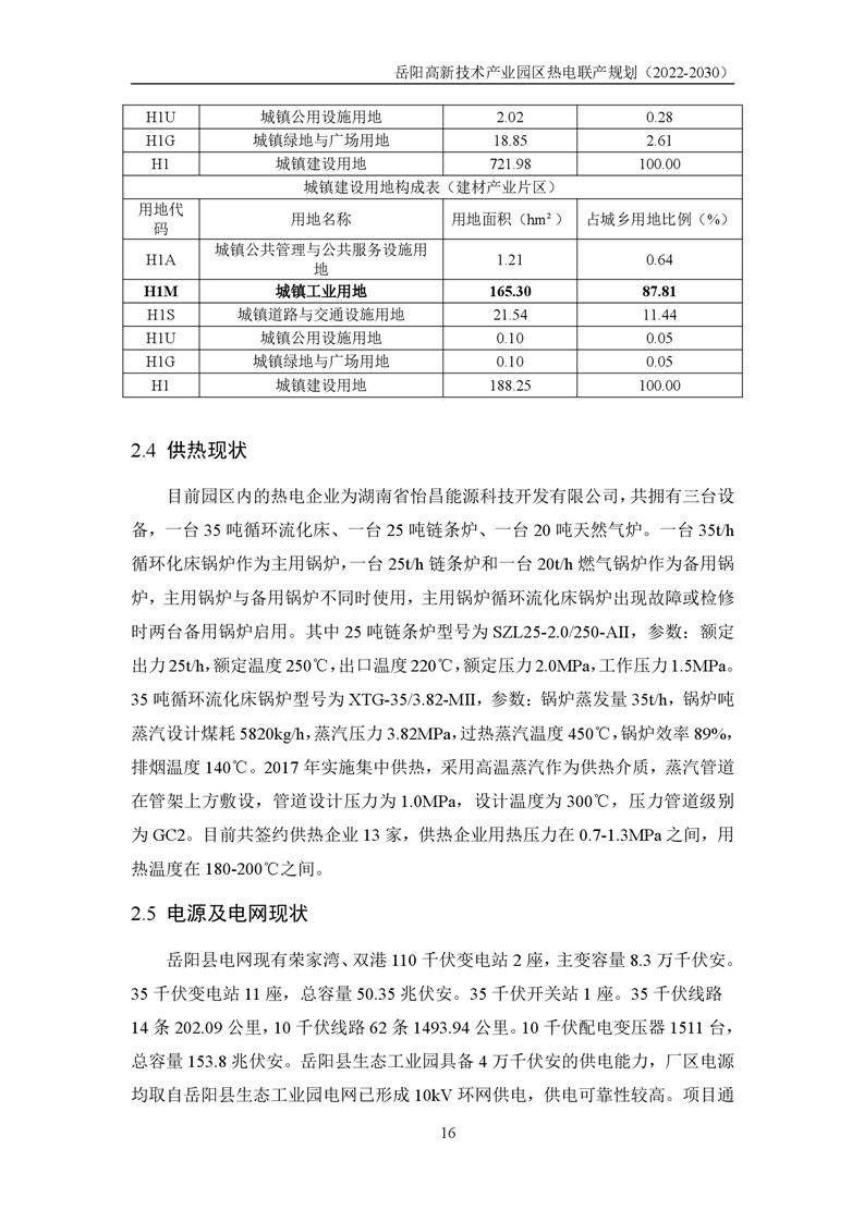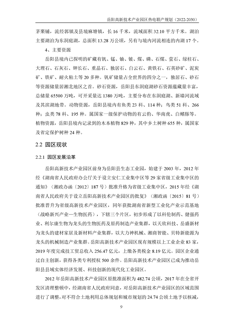【批後公布】《嶽陽高新技術產業園熱電聯產規劃(2022-2023年)》