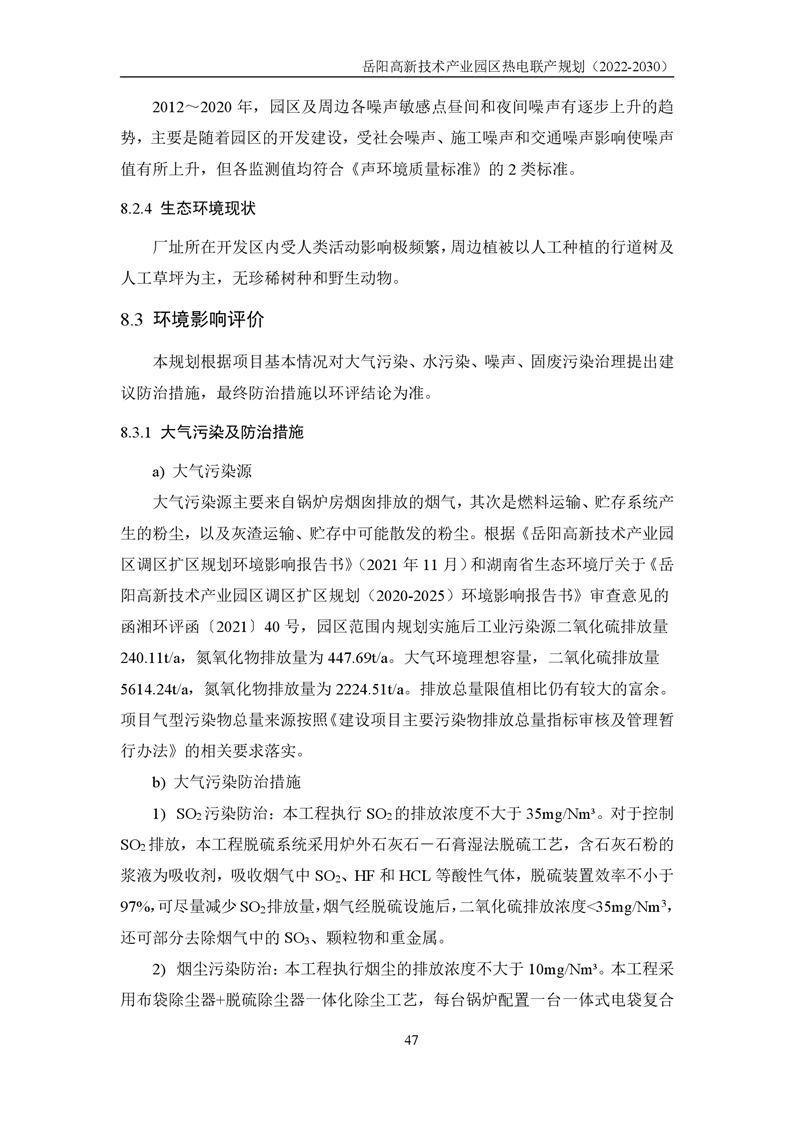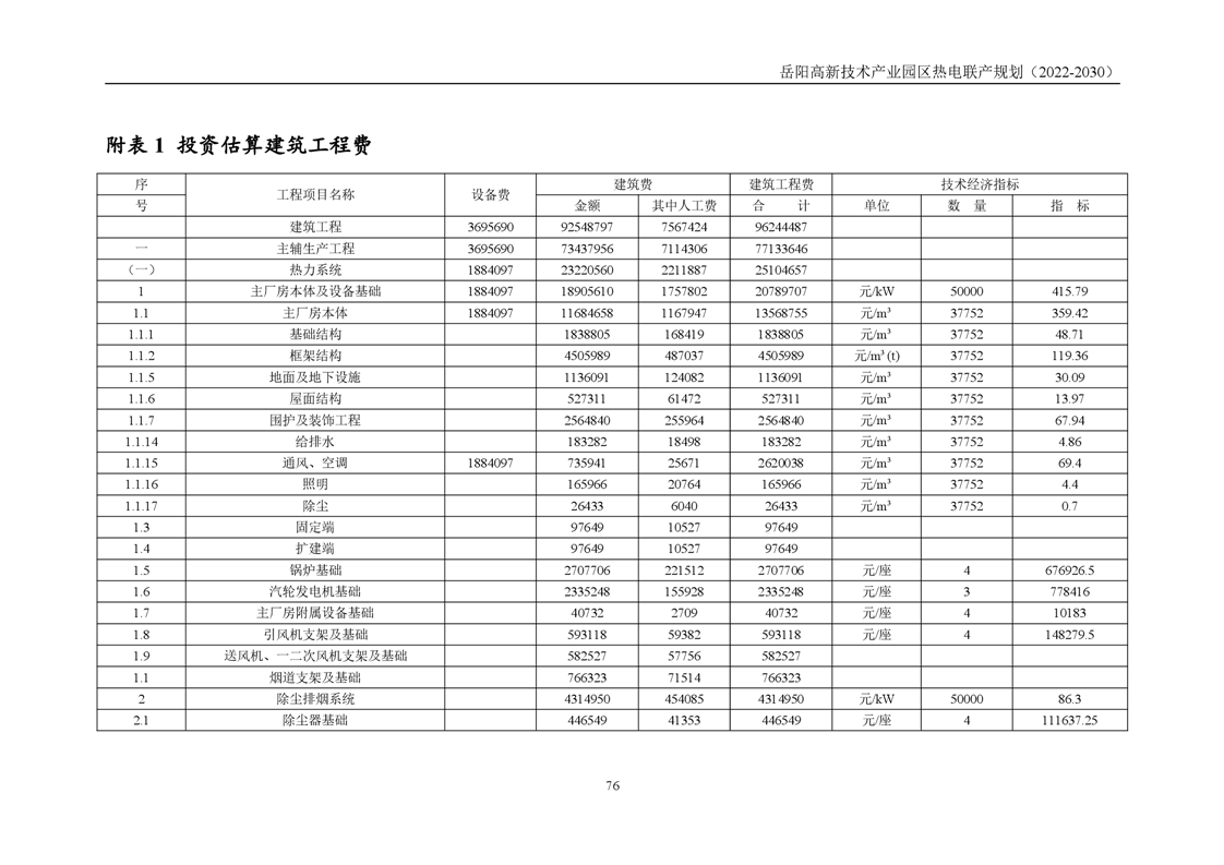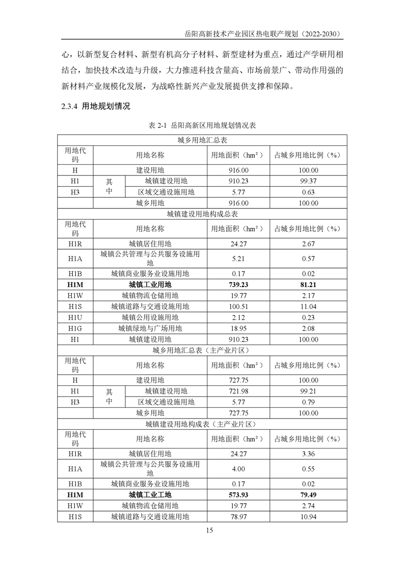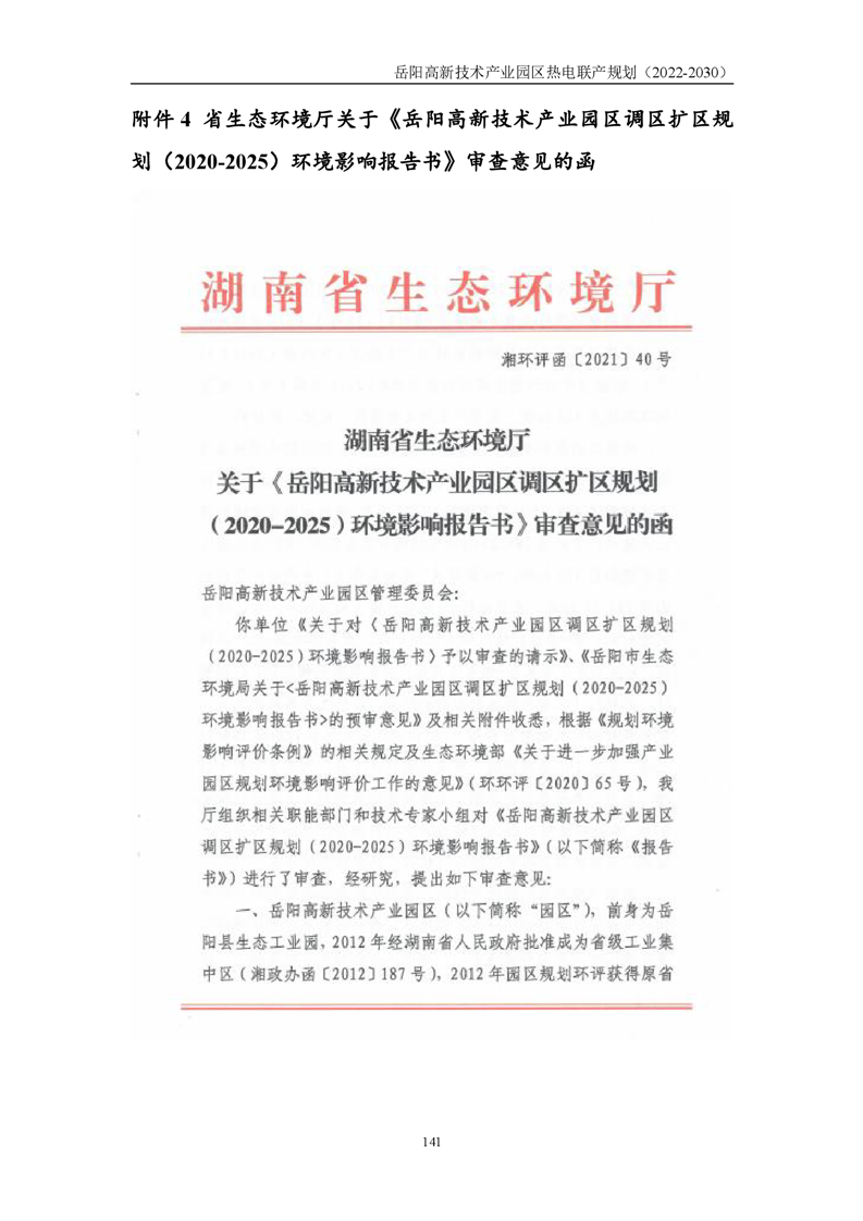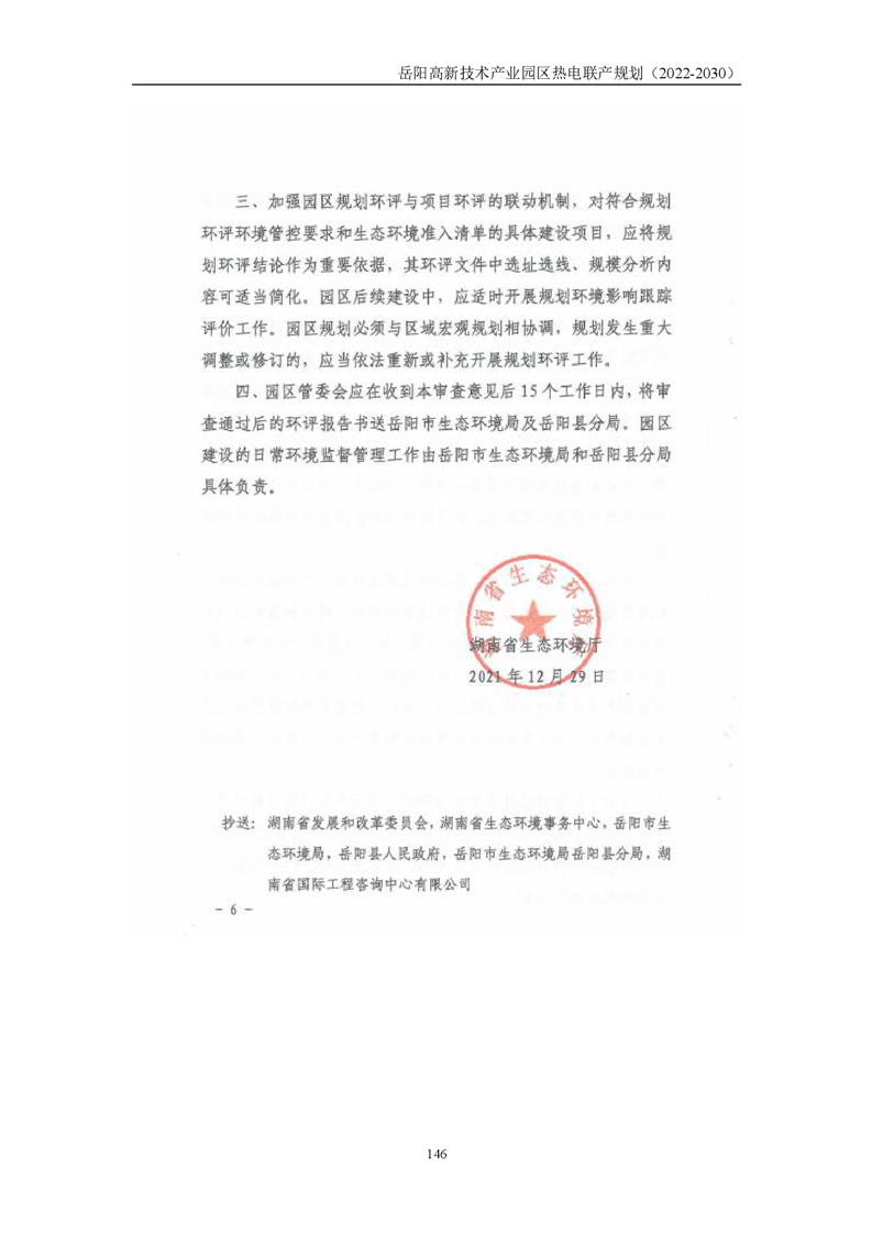【批後公布】《嶽陽高新技術產業園熱電聯產規劃(2022-2023年)》