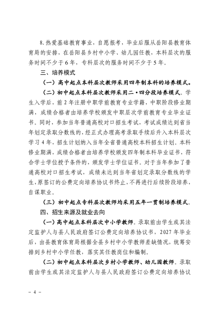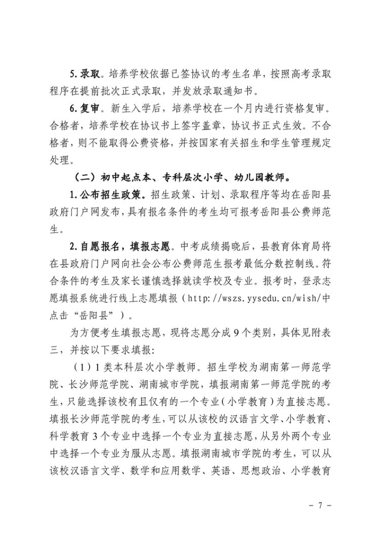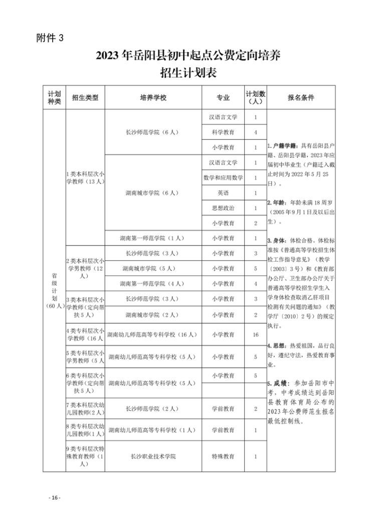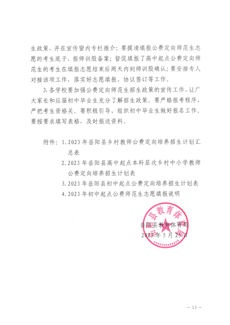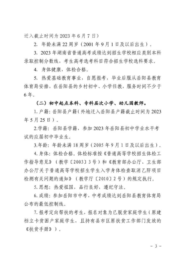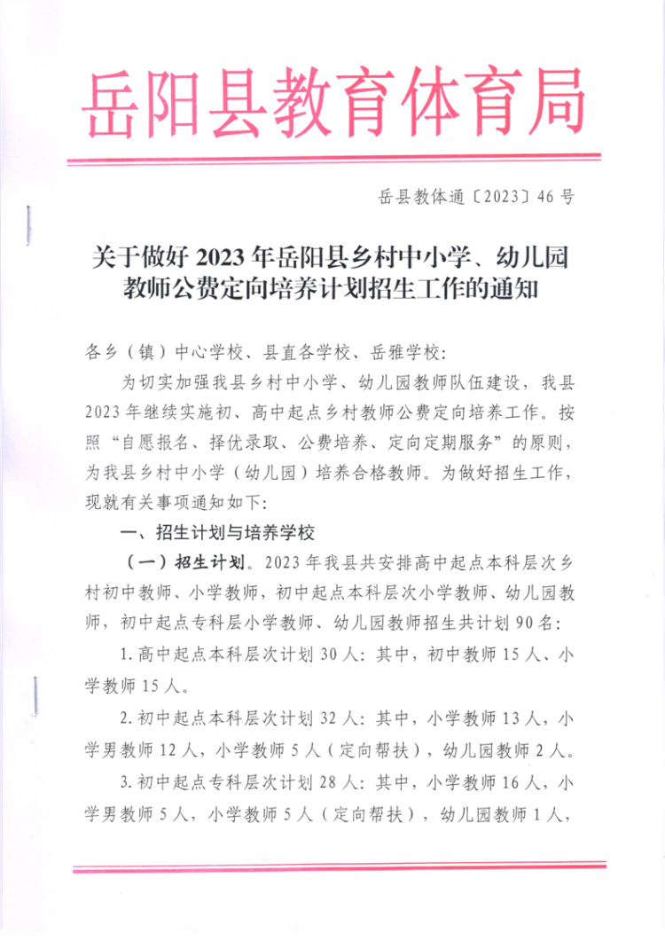 關於做好2023年嶽陽縣鄉村中小學、幼兒園教師公費定向培養計劃招生工作的通知