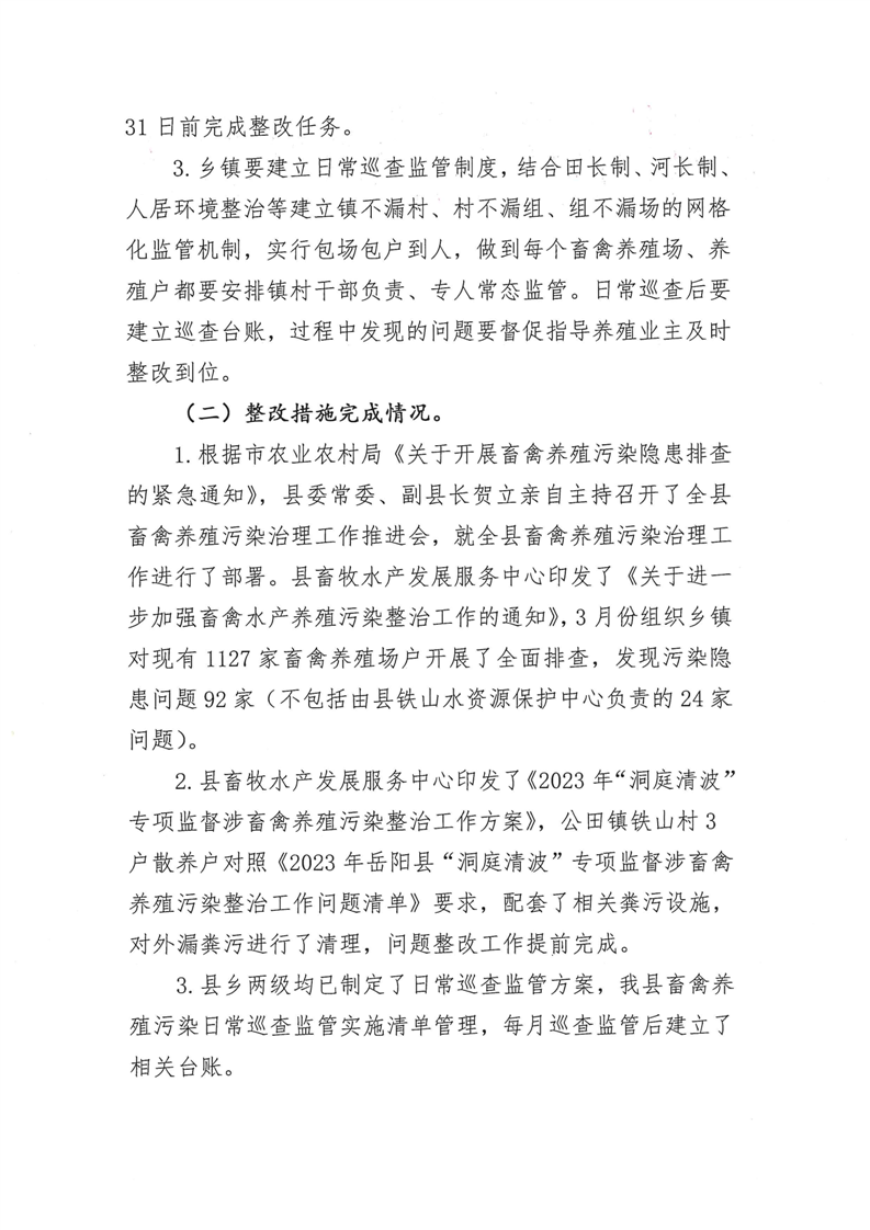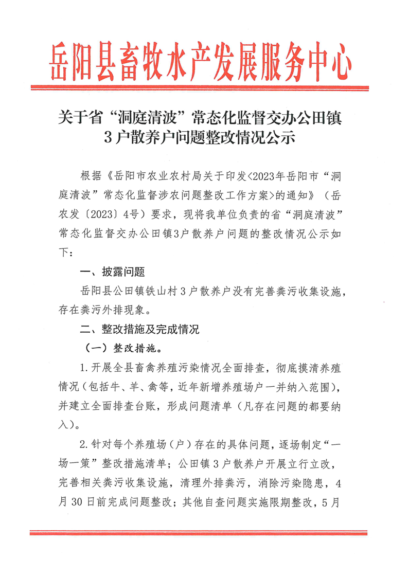 關於省“洞庭清波”常態化監督交辦公田鎮3戶散養戶問題整改情況公示