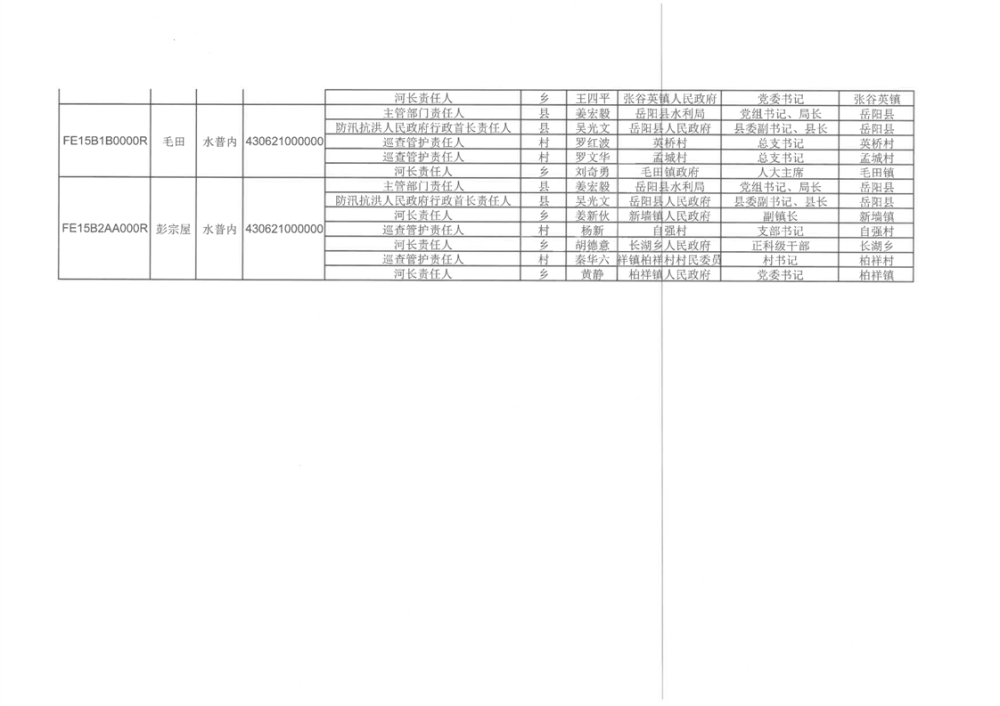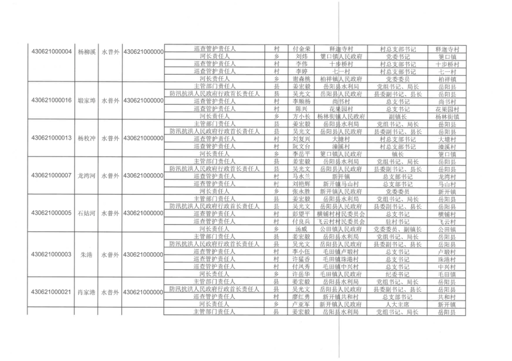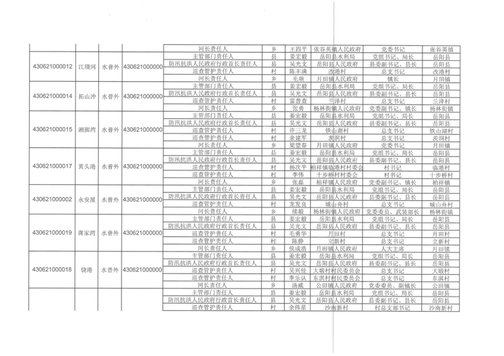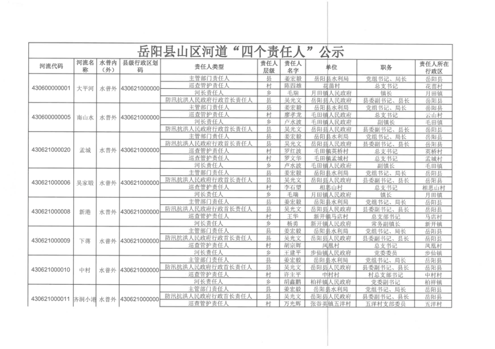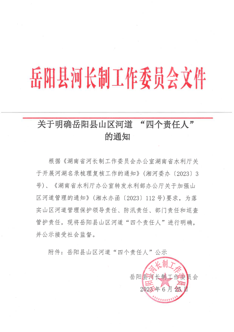 關於明確嶽陽縣山區河道“四個責任人”的通知