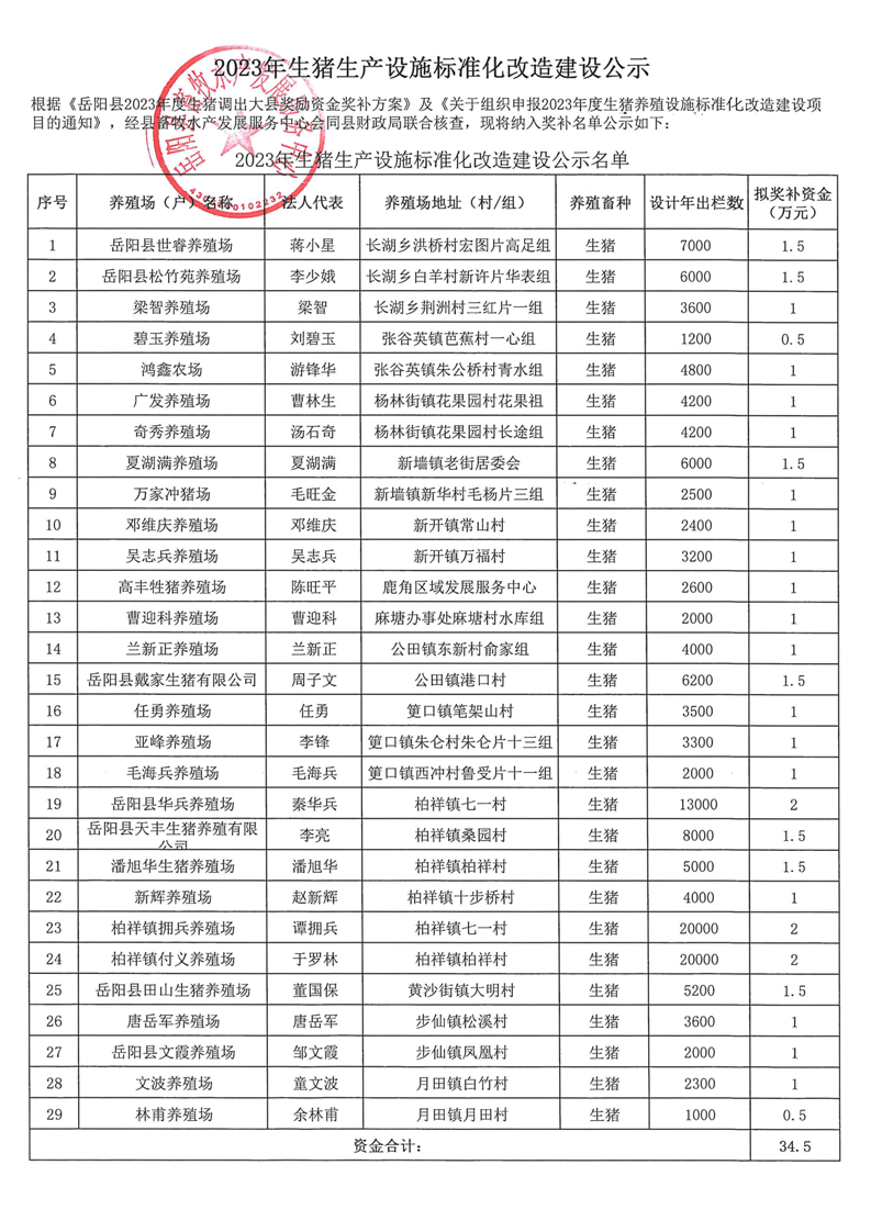 2023年生豬生產設施標準化改造建設公示