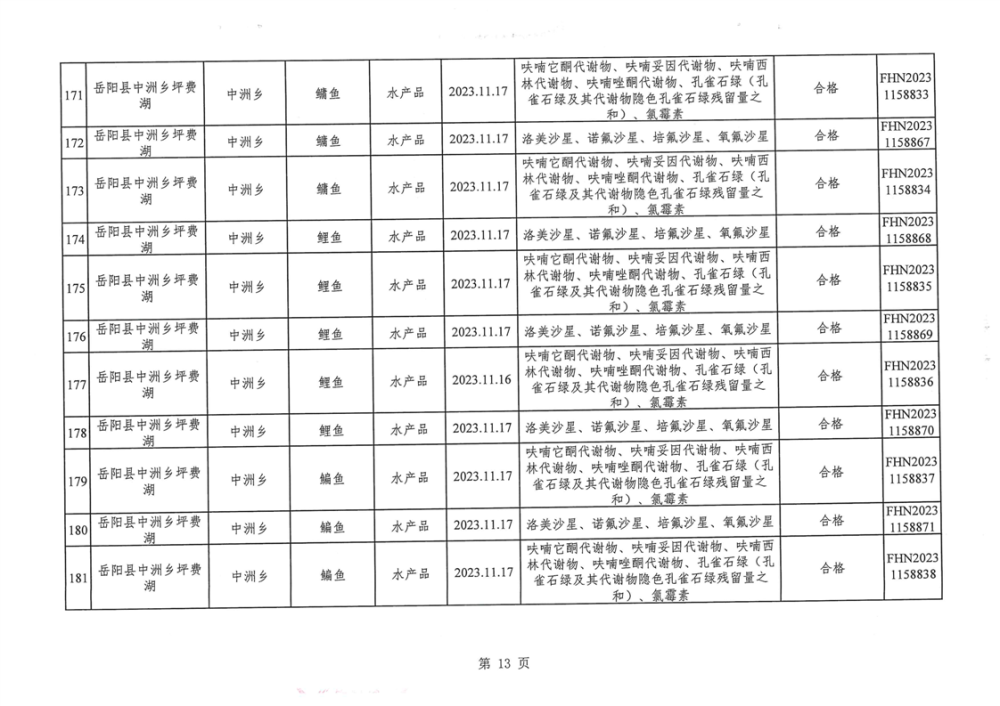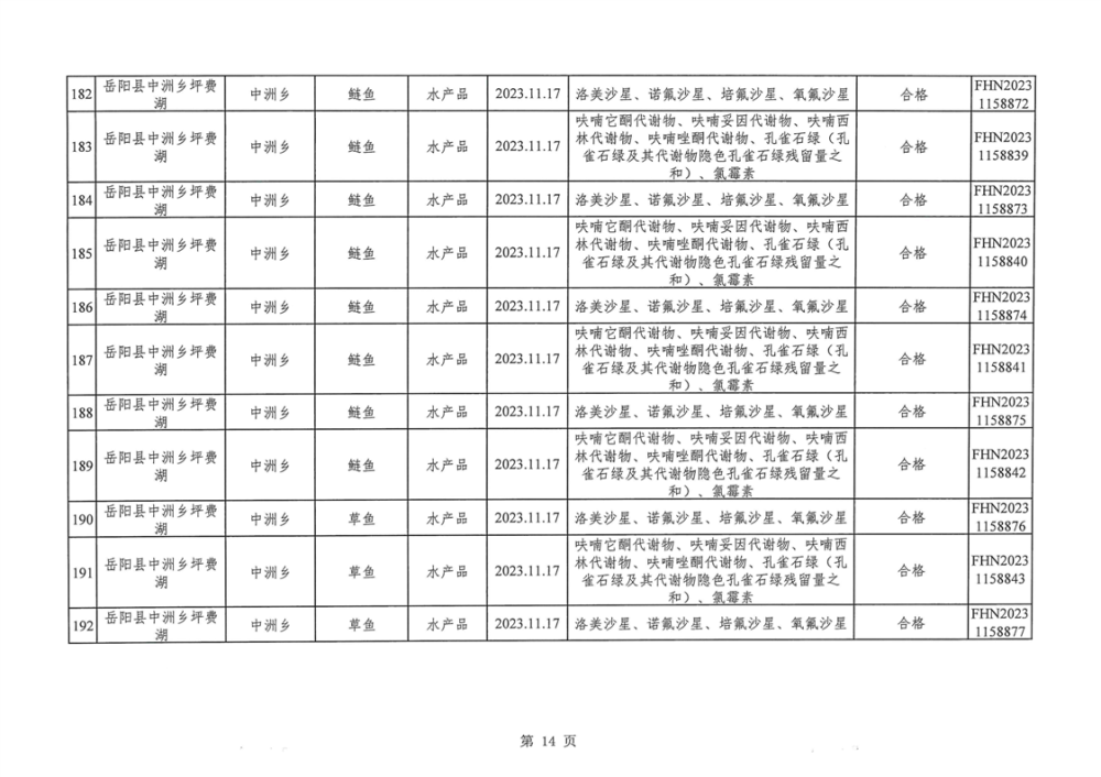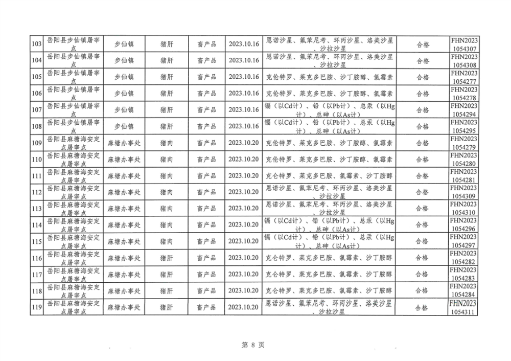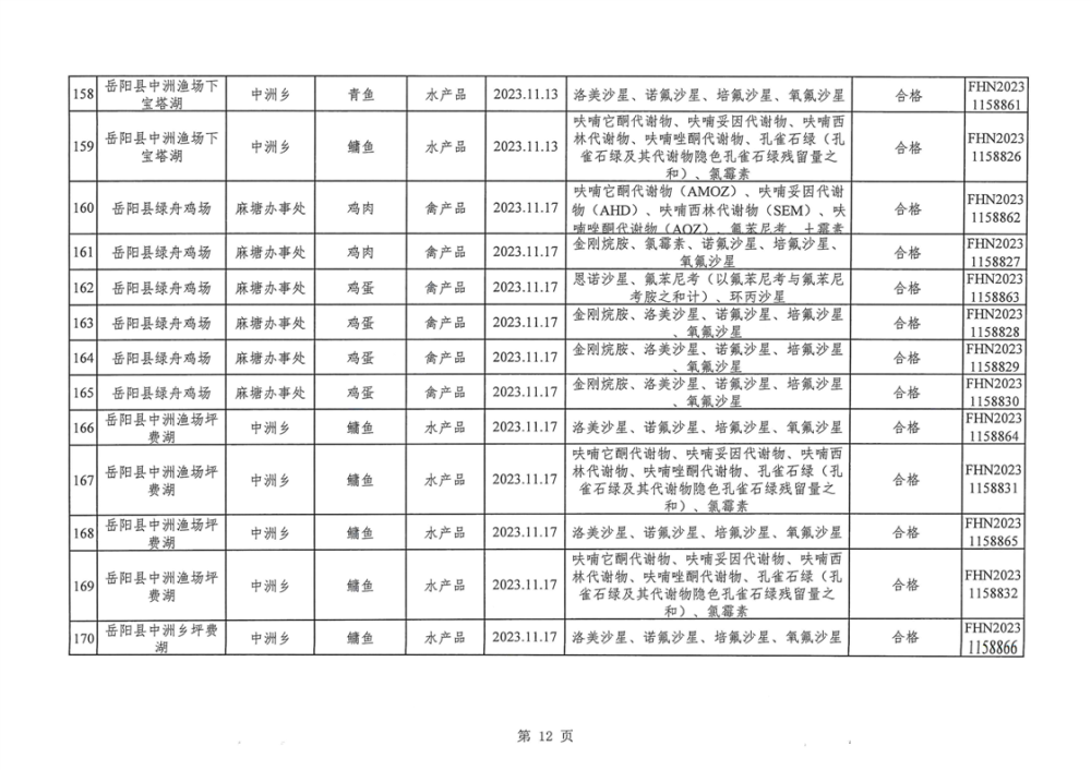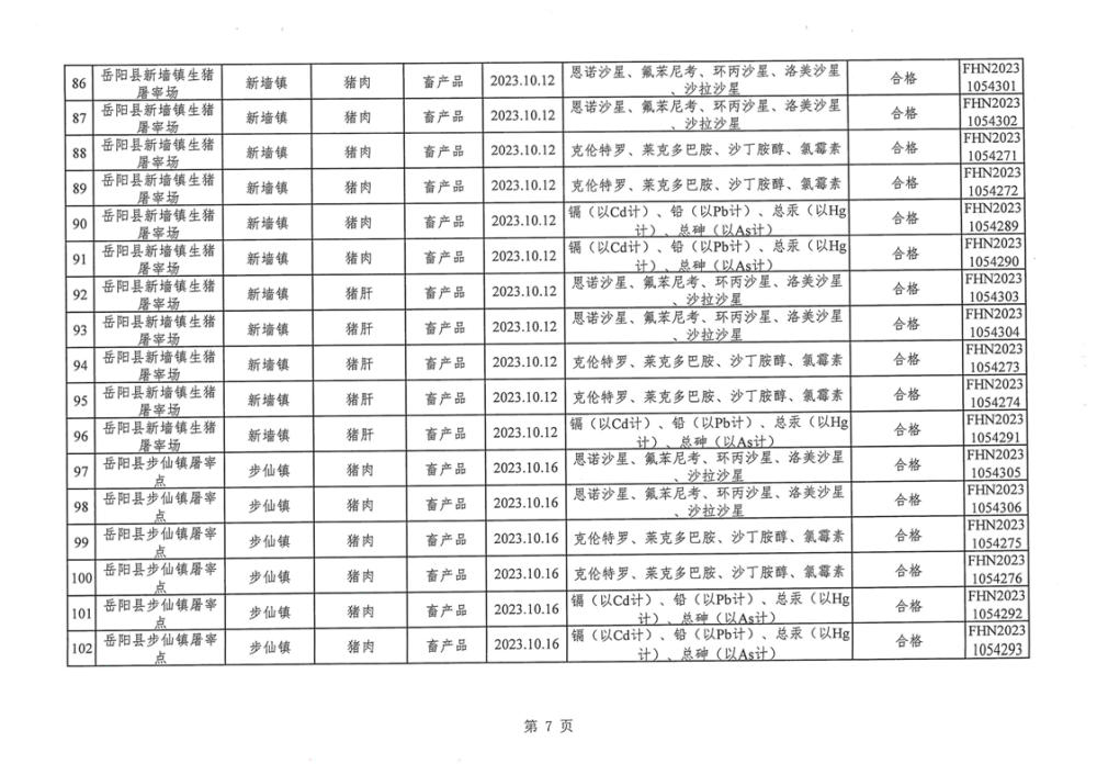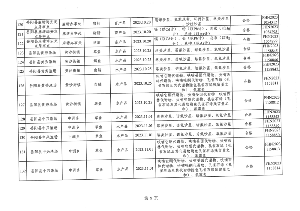 2023年嶽陽縣畜禽水產品、養殖投入品質量安全監測信息公示明細表