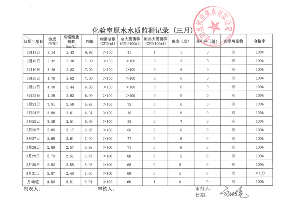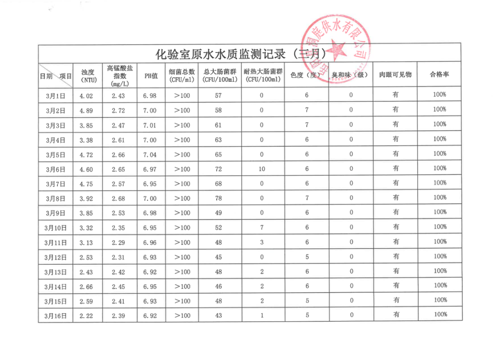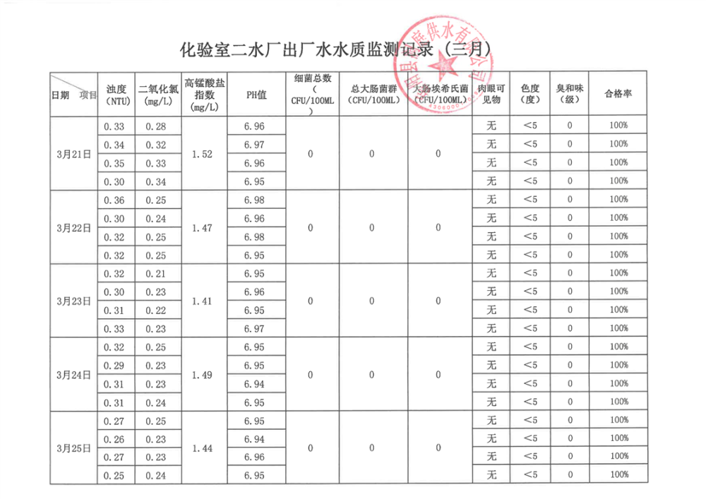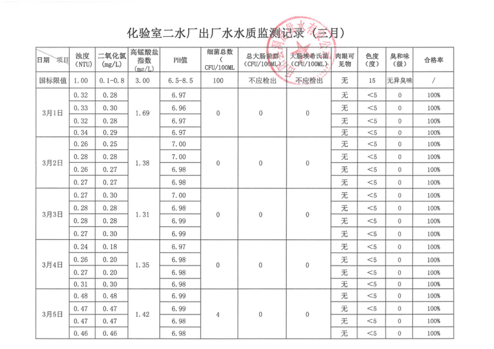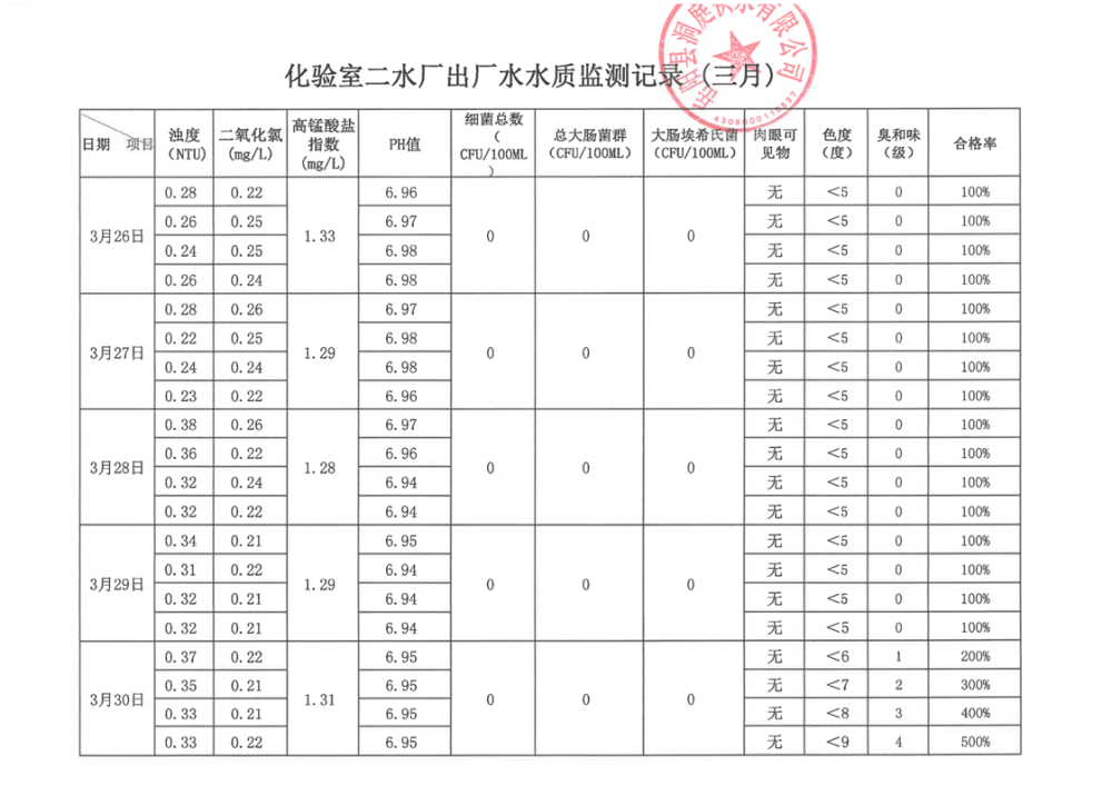 嶽陽縣洞庭供水有限公司水質檢測信息公開(三月份)