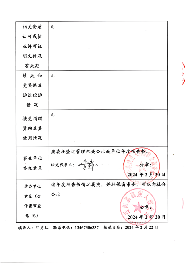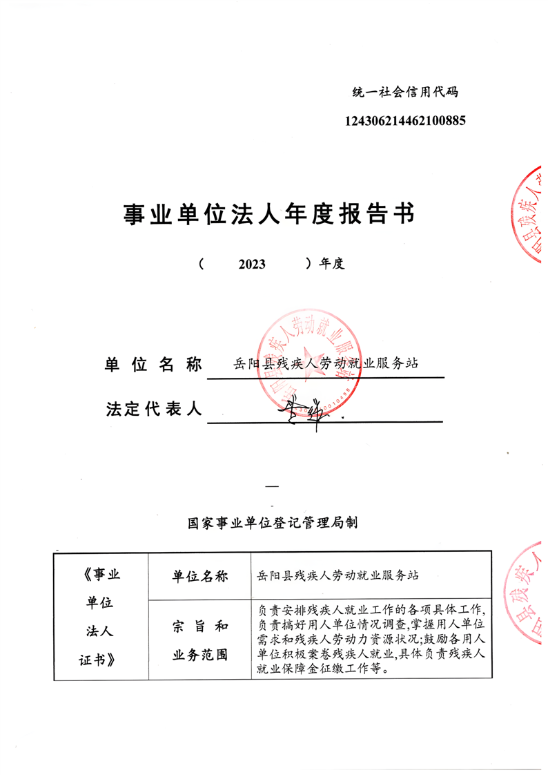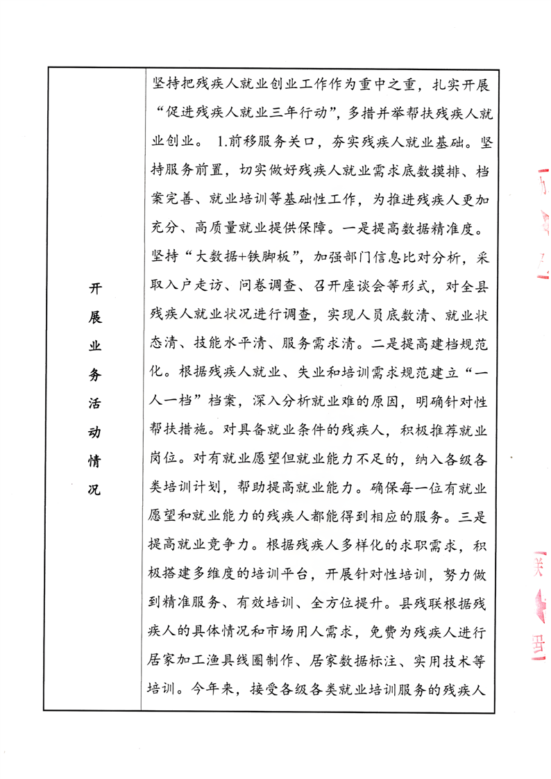 事業單位法人年度報告書(縣殘聯勞動就業服務站)