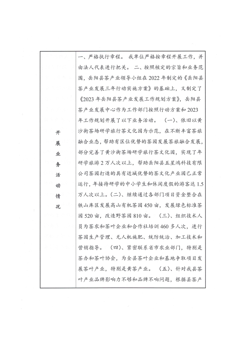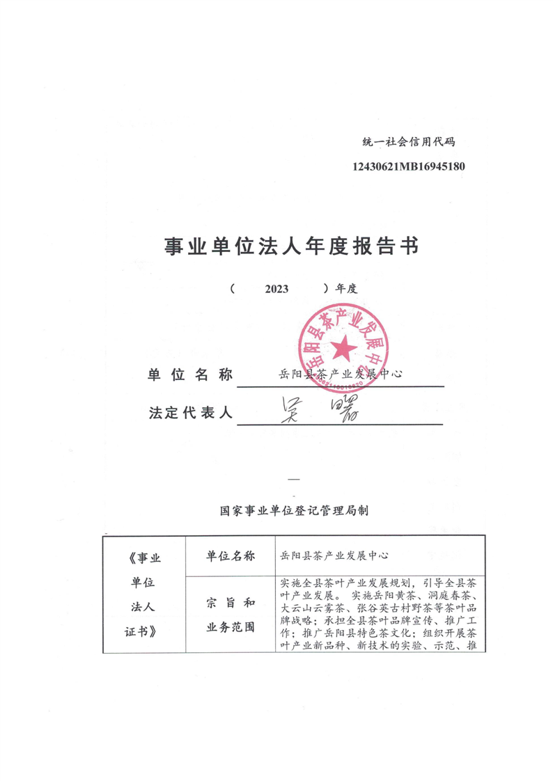 嶽陽縣茶產業發展中心法人年度報告書