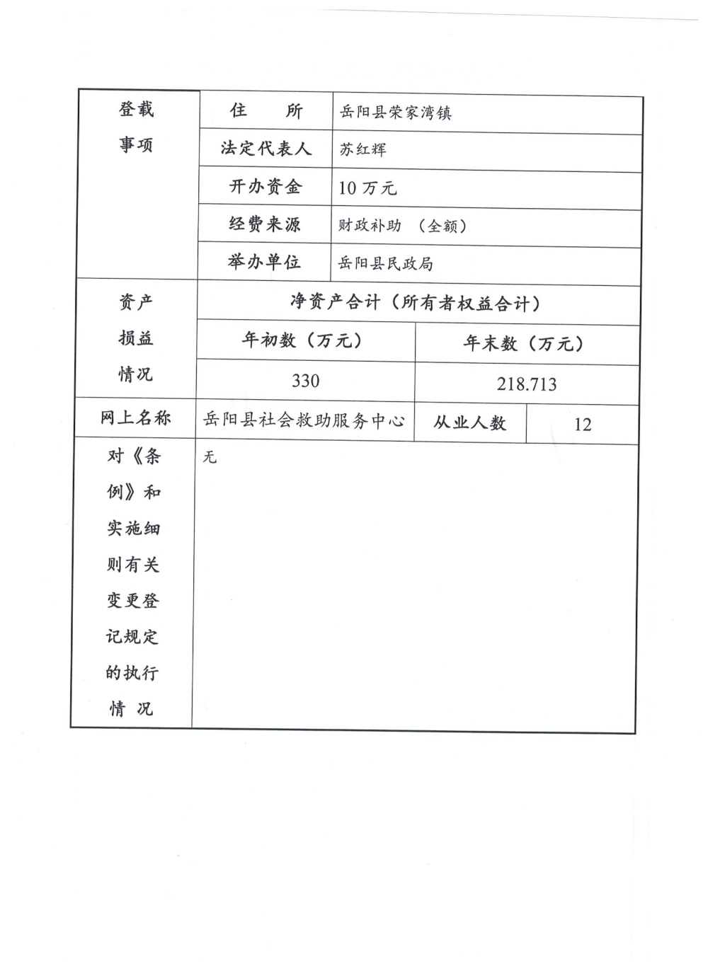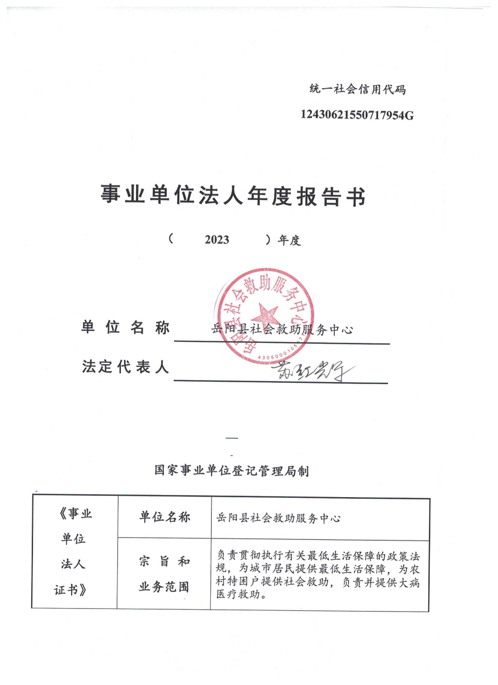 嶽陽縣社會救助服務中心2023年度報告書