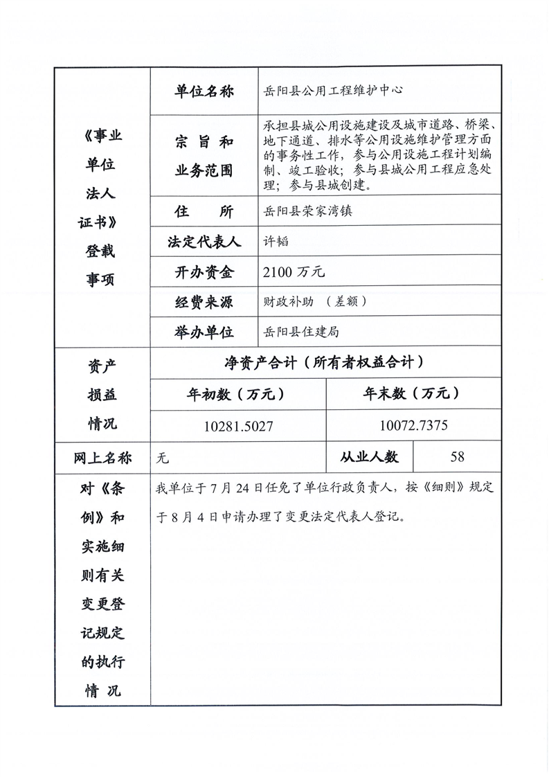 公用工程維護中心事業單位法人年度報告