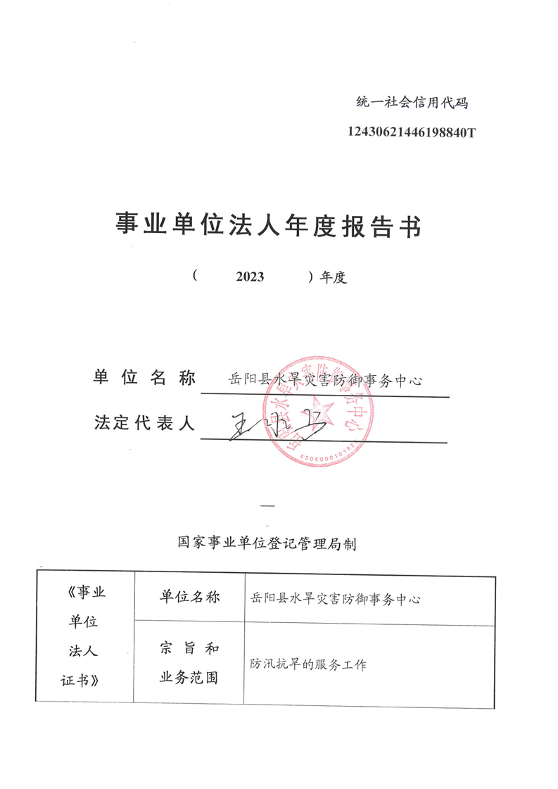 嶽陽縣水旱災害防禦事務中心2023年度報告書