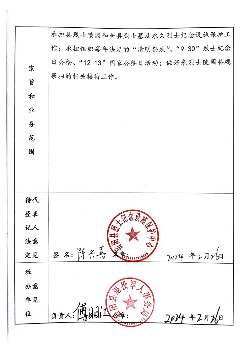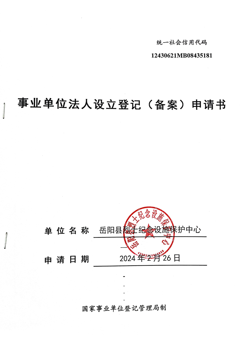 嶽陽縣烈士紀念設施保護中心事業單位法人設立登記(備案)申請書