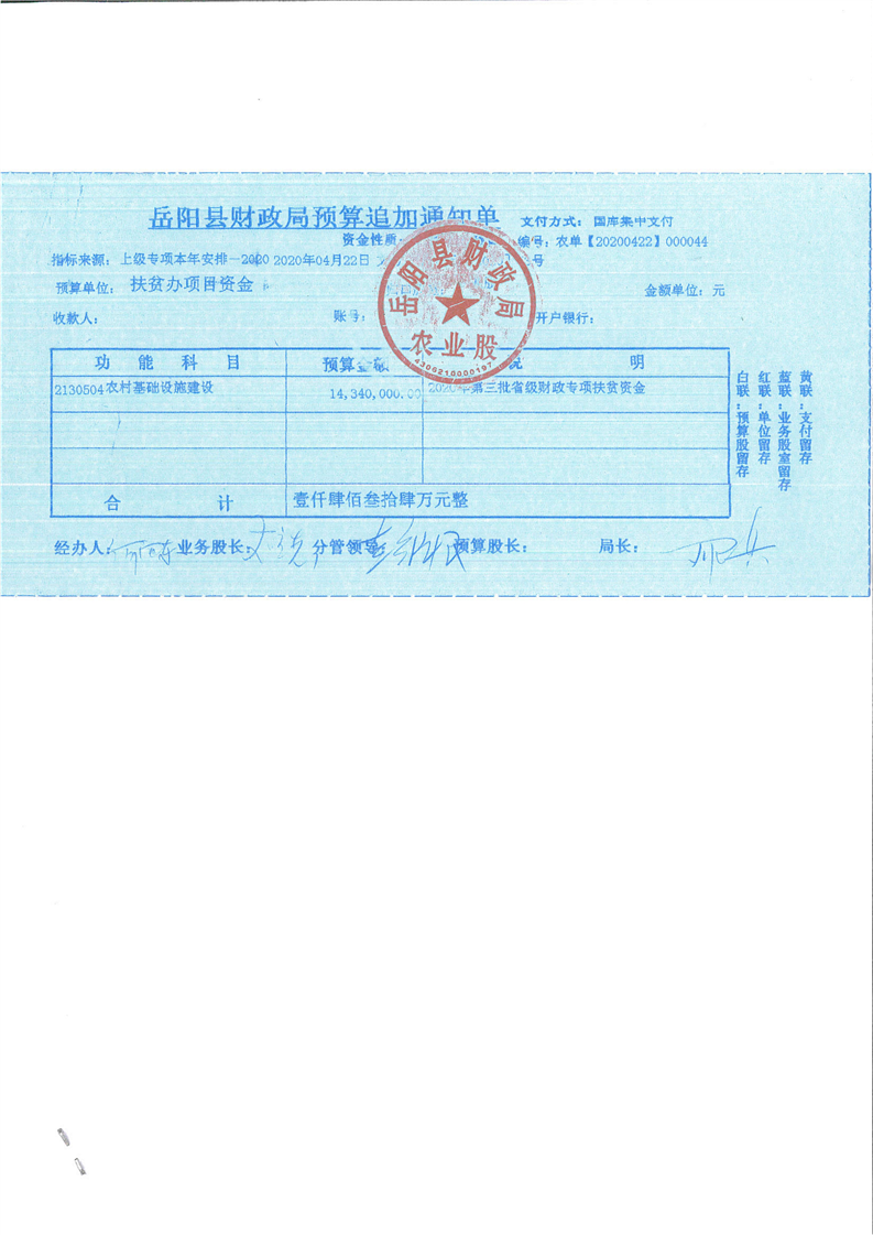 嶽陽縣下達2020年第三批省級財政專項扶貧資金公開公示(六