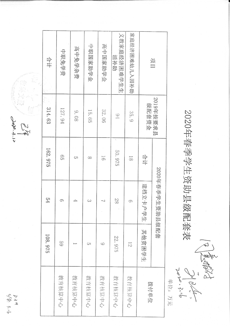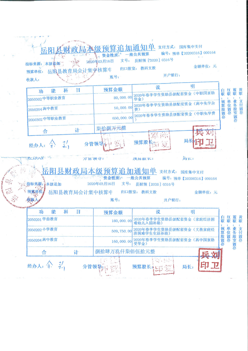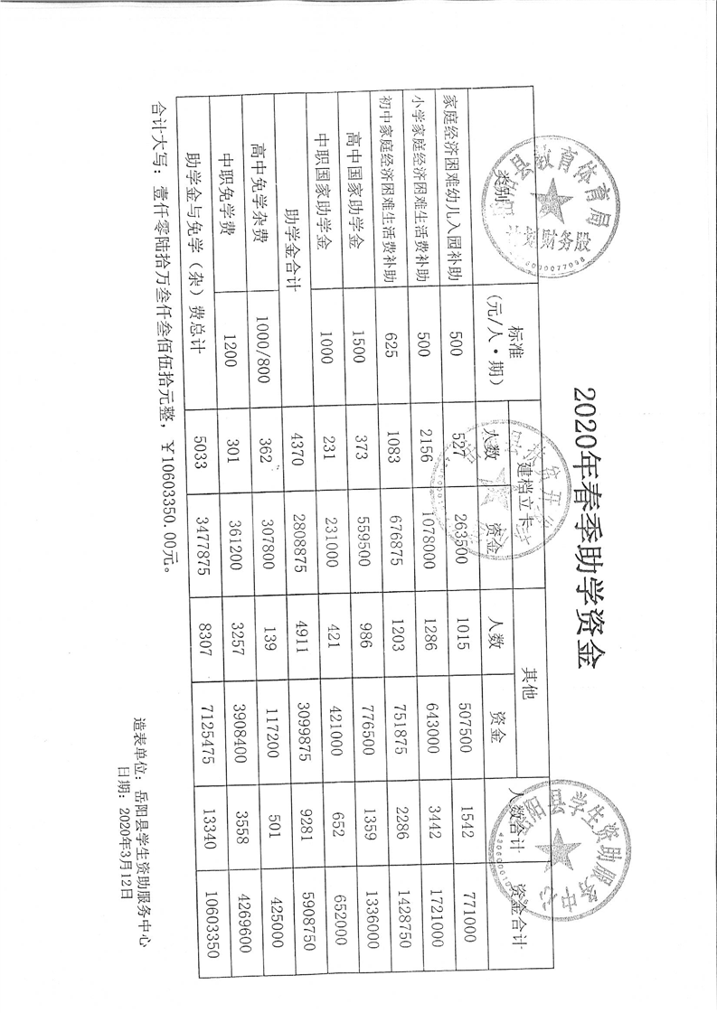 嶽陽縣2020年春季學生資助縣級配套資金公開公示