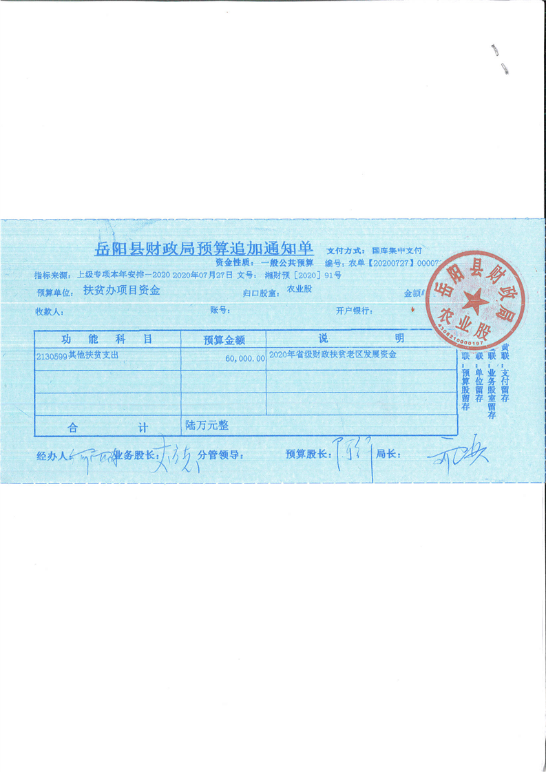 嶽陽縣下達2020年省級財政扶貧老區發展資金公開公增(十一)
