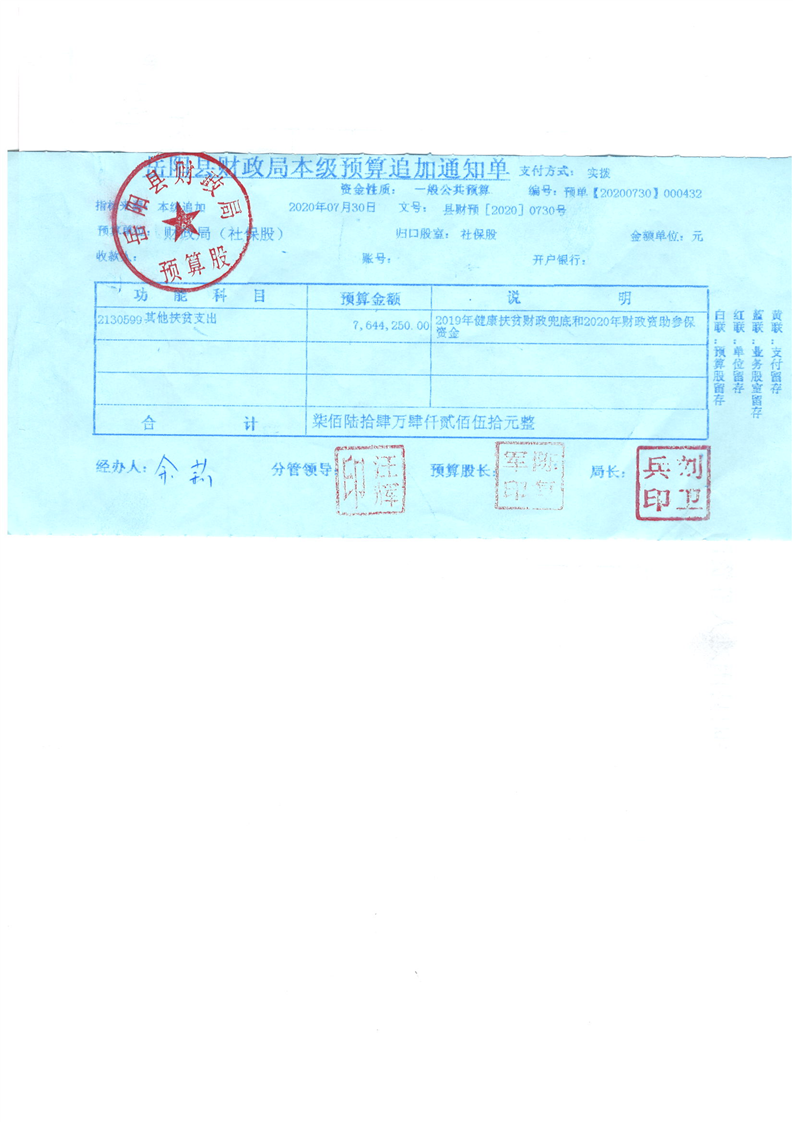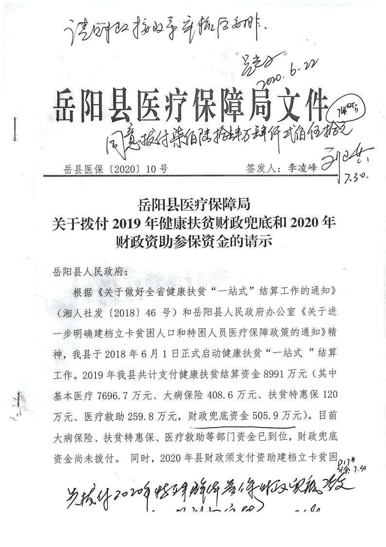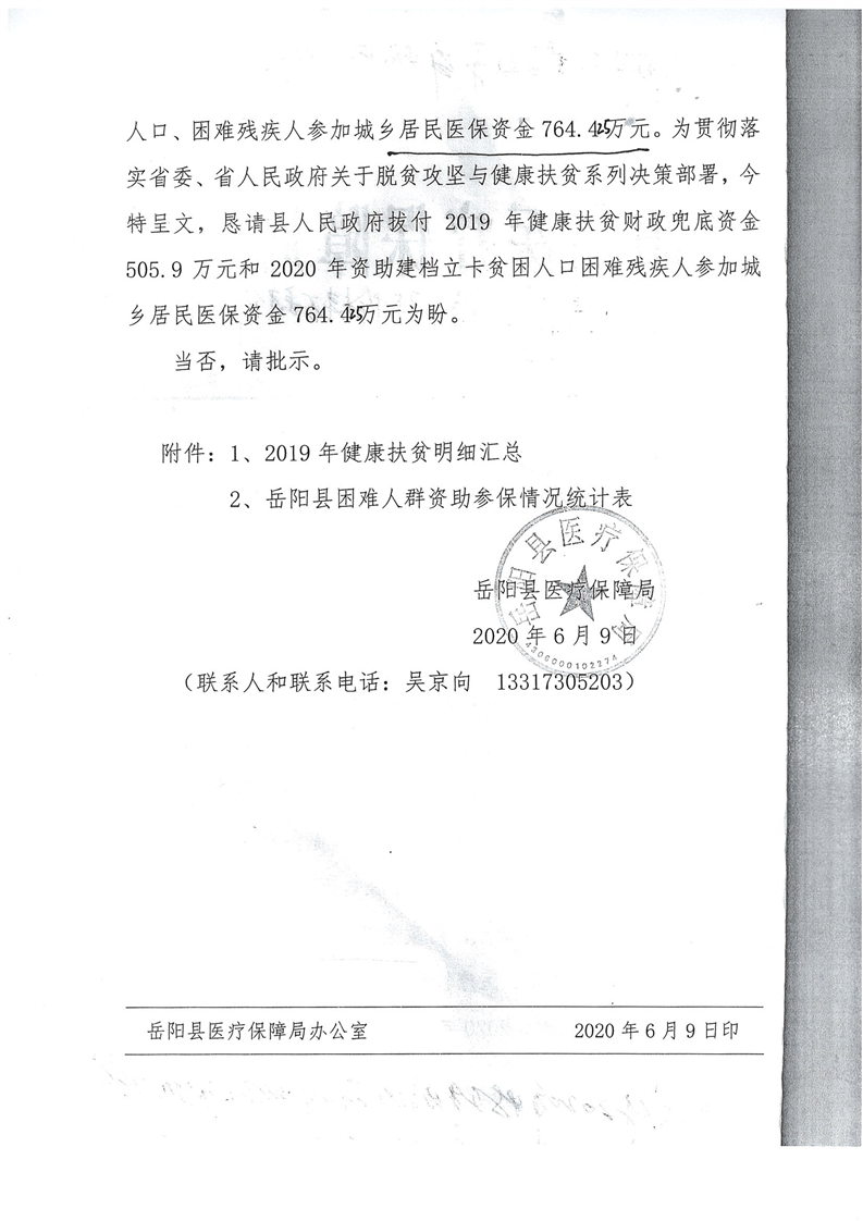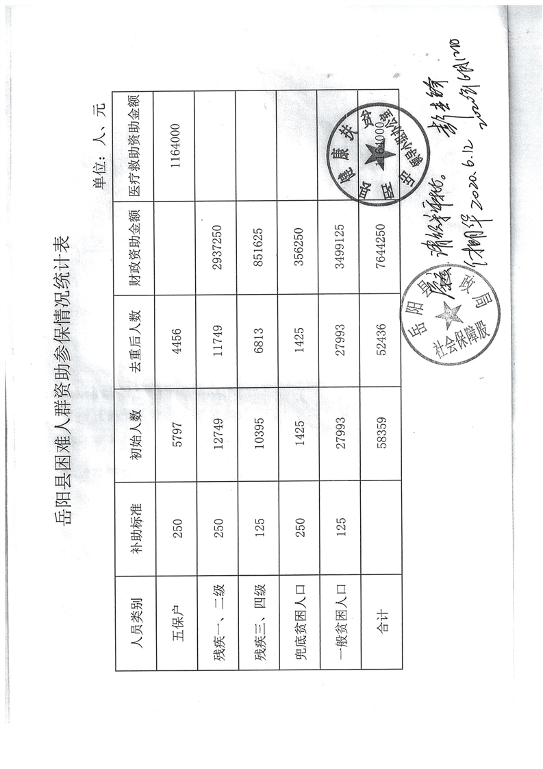 嶽陽縣下達2019年健康扶貧財政兜底和2020年財政資助參保資金公開公示