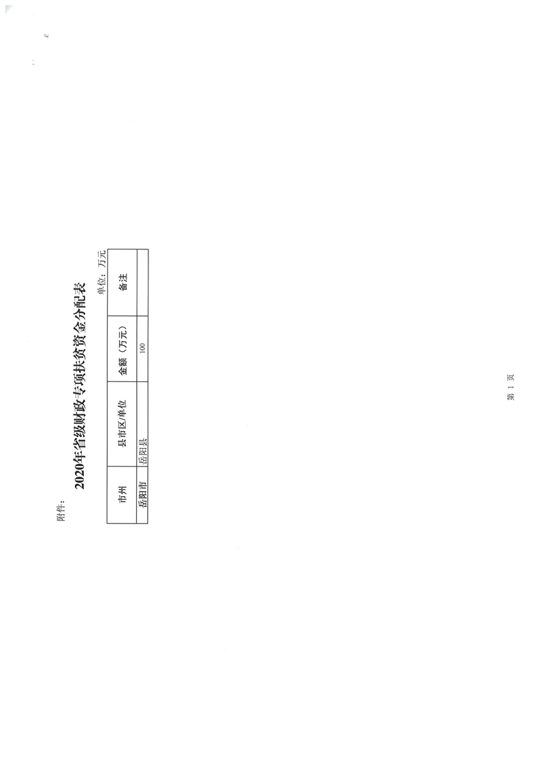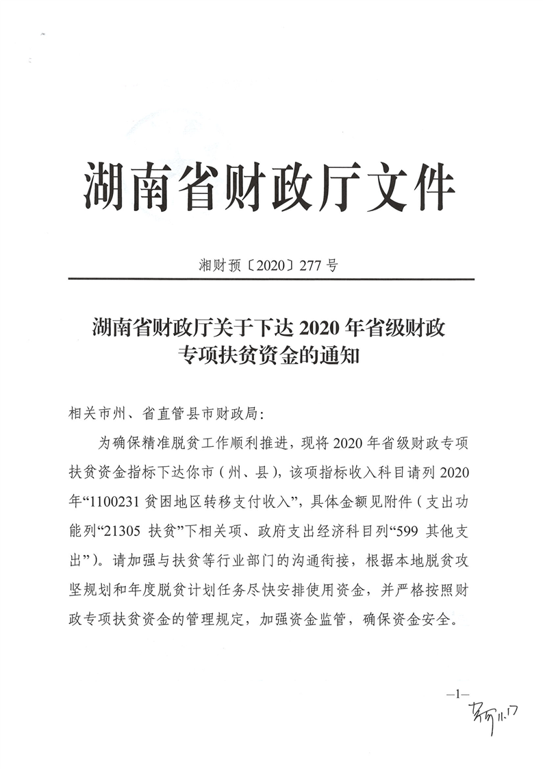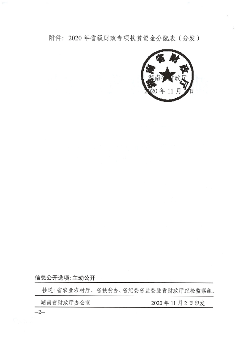 湖南省財政廳關於下達2020年省級財政專項扶貧資金的公開公示