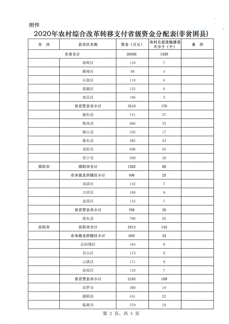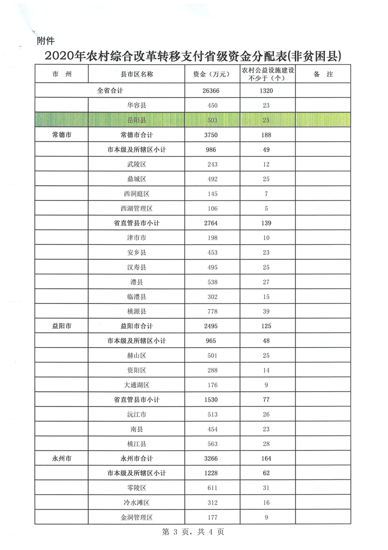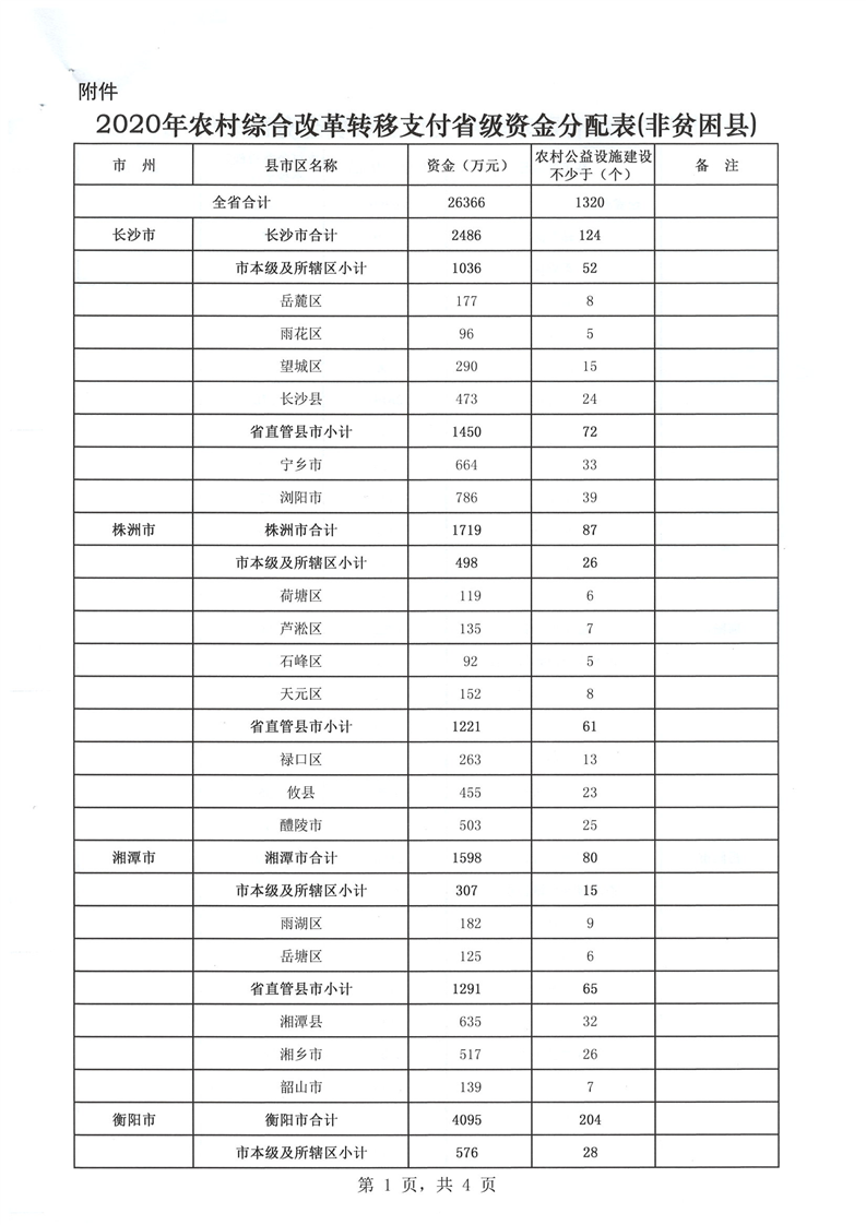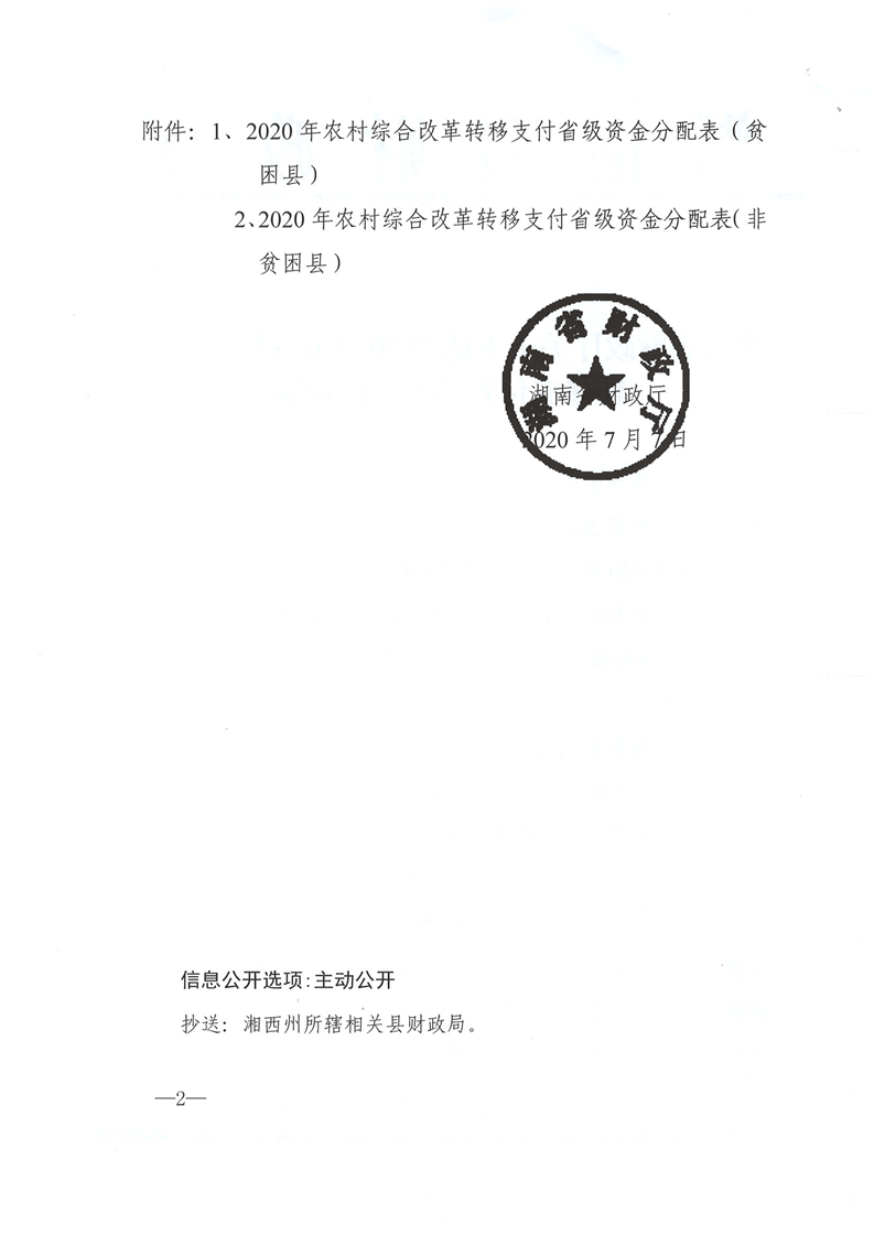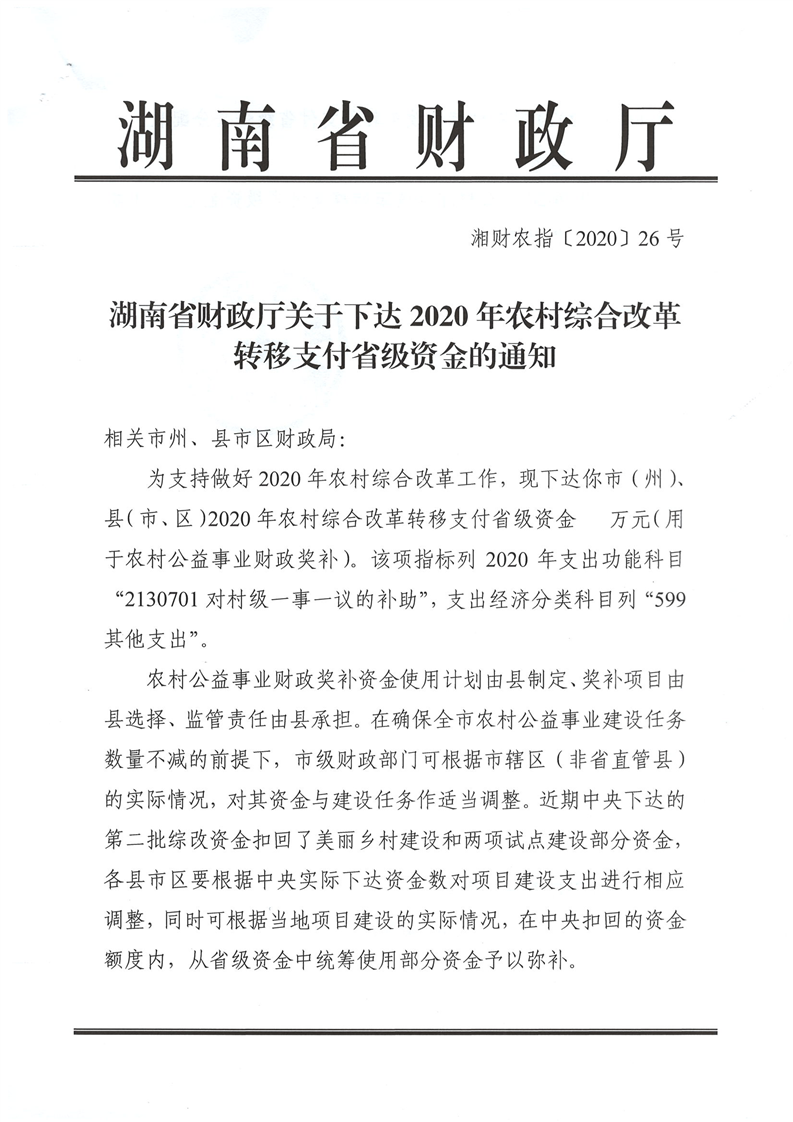 省財政廳下達2020年農村綜合改革轉移支付省級資金公開