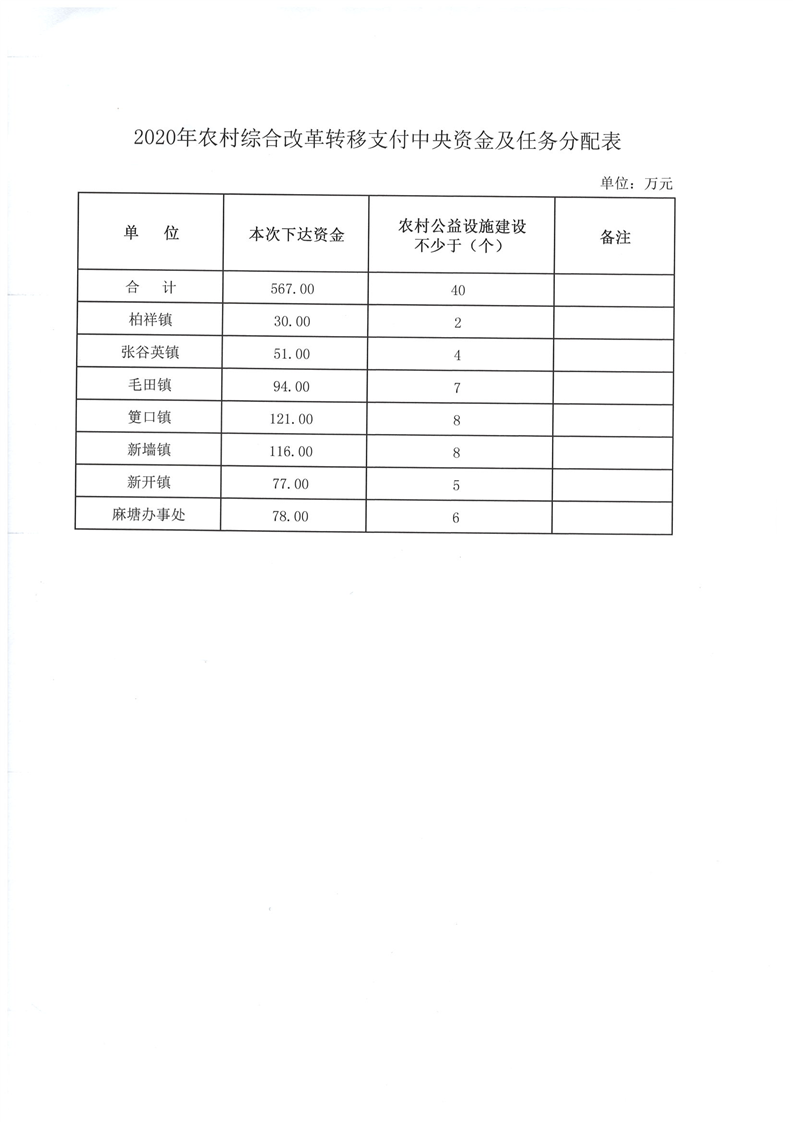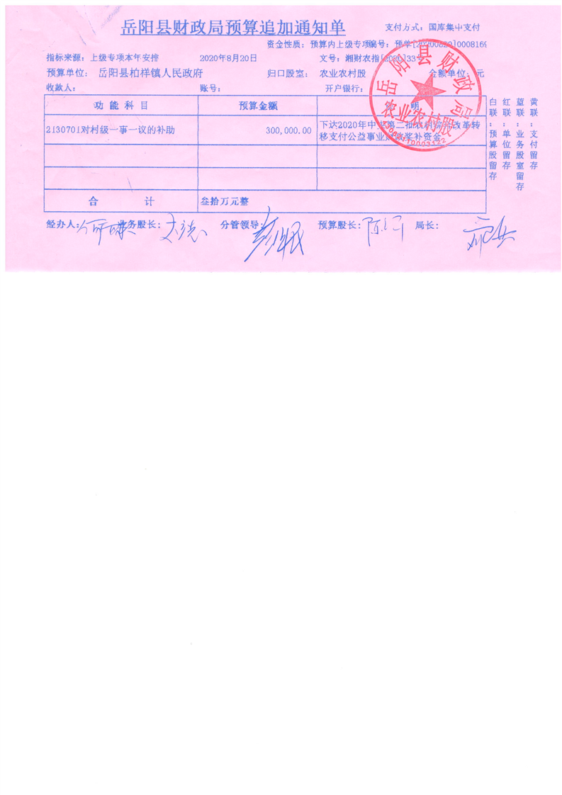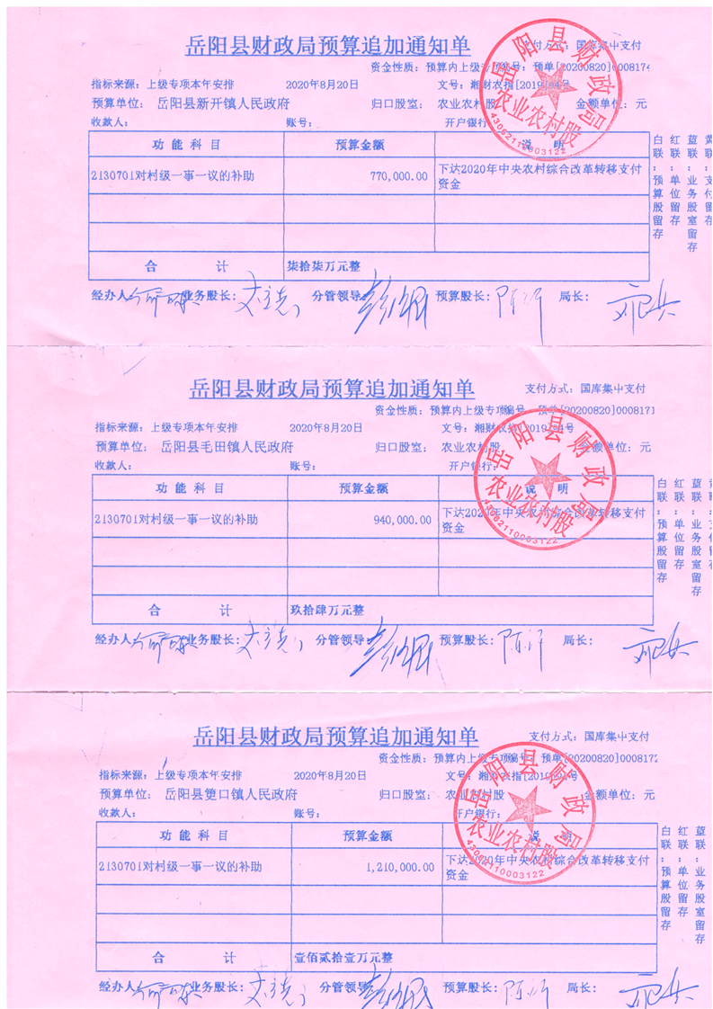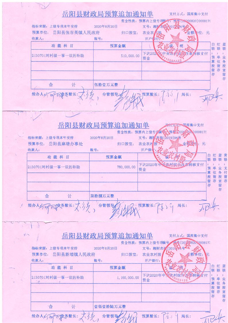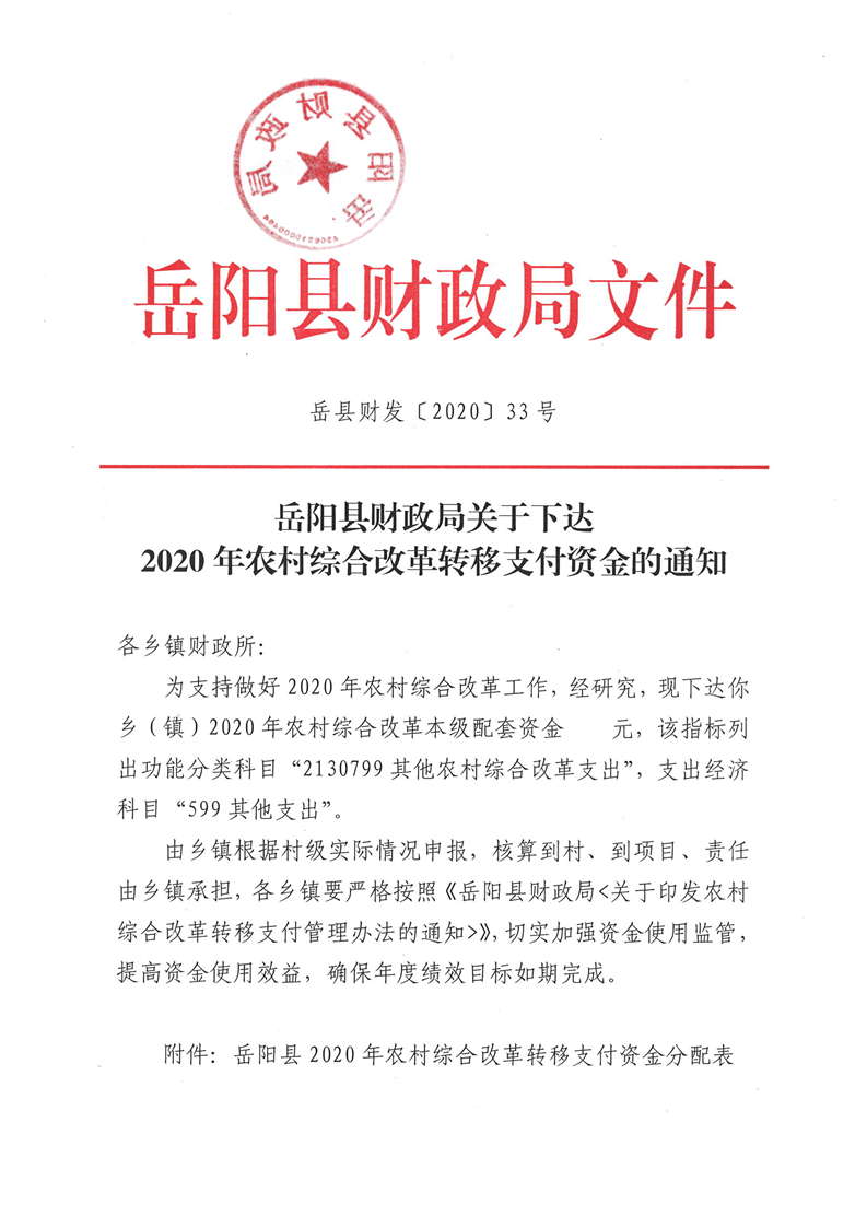 嶽陽縣財政局下達2020年農村綜合改革轉移支付中央資金公開