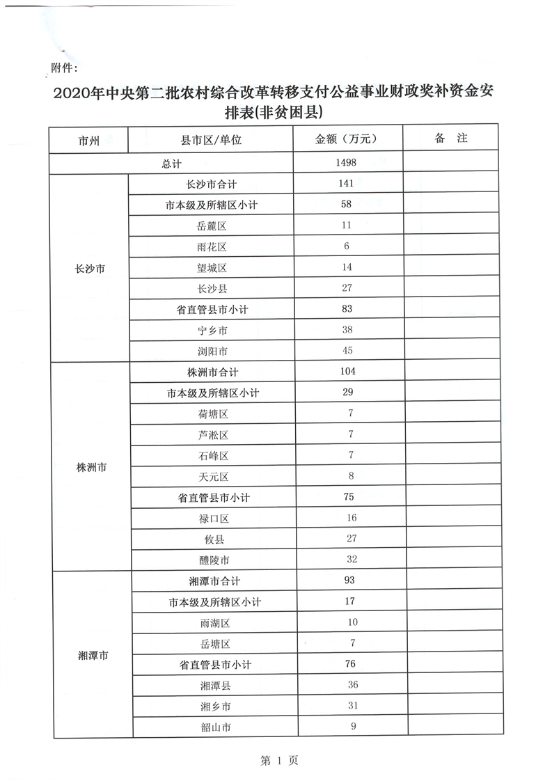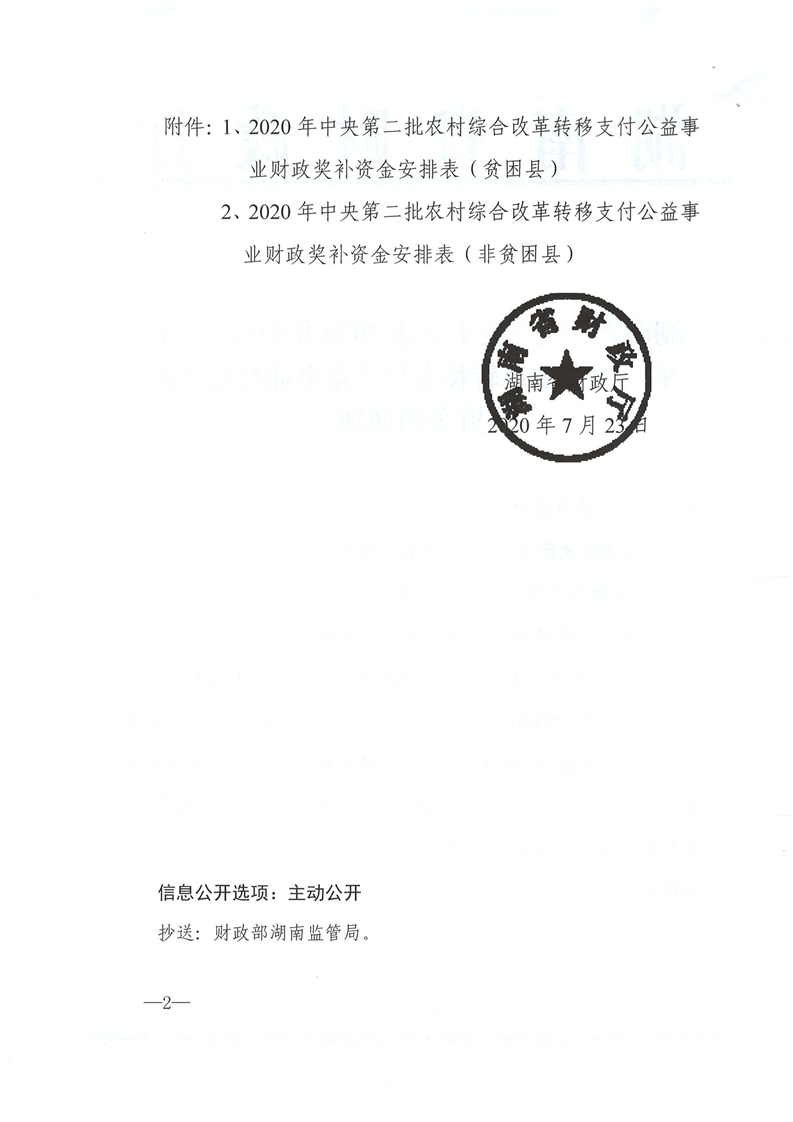 省財政廳下達2020年中央第二批農村綜合改革轉移支付公益事業財政獎補資金公開