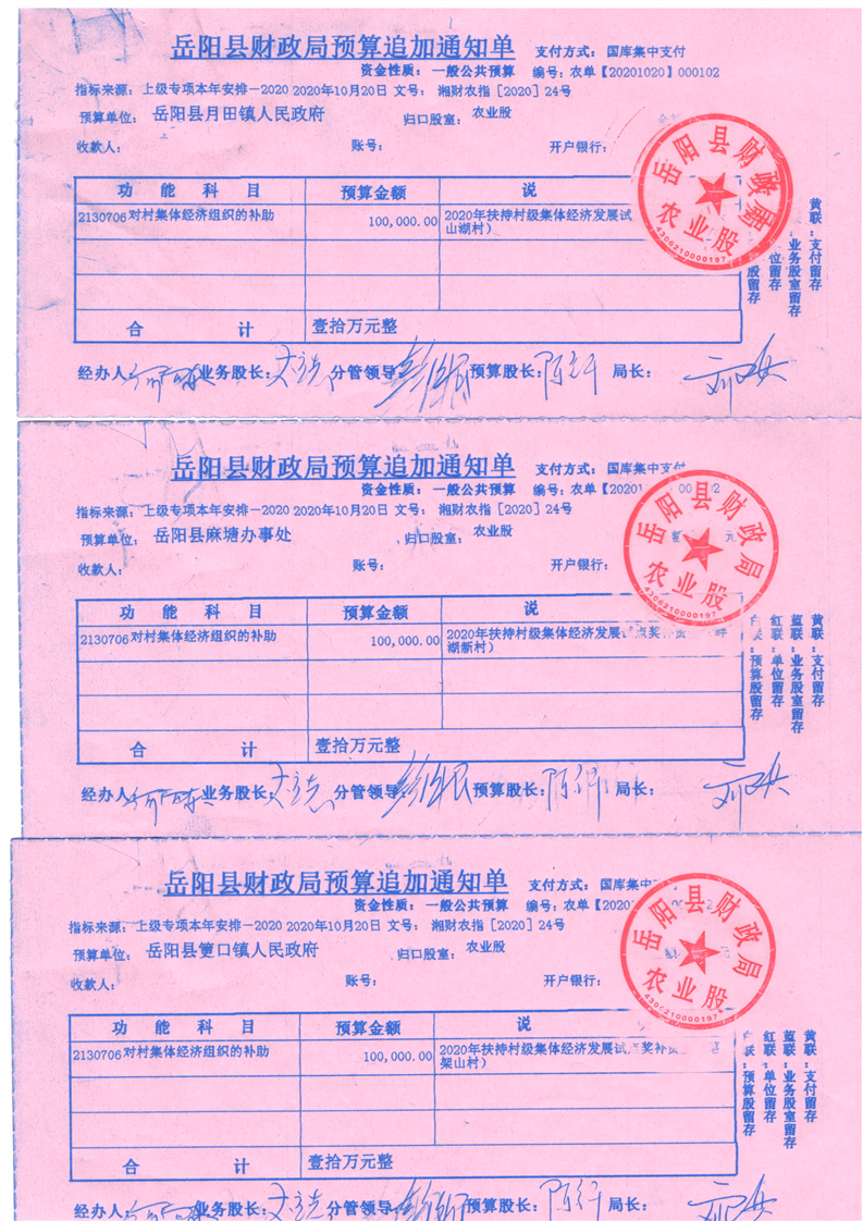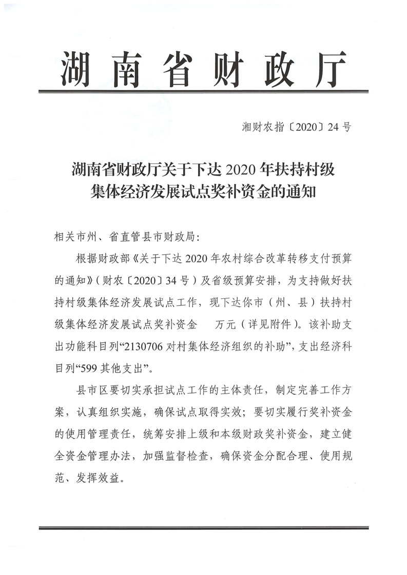 嶽陽縣財政局下達2020年扶持村級集體經濟發展試點省級獎補資金公開