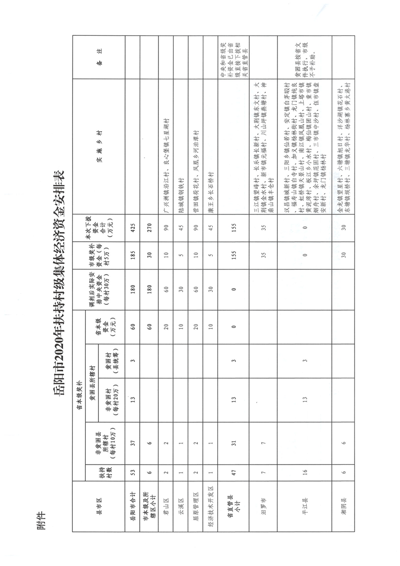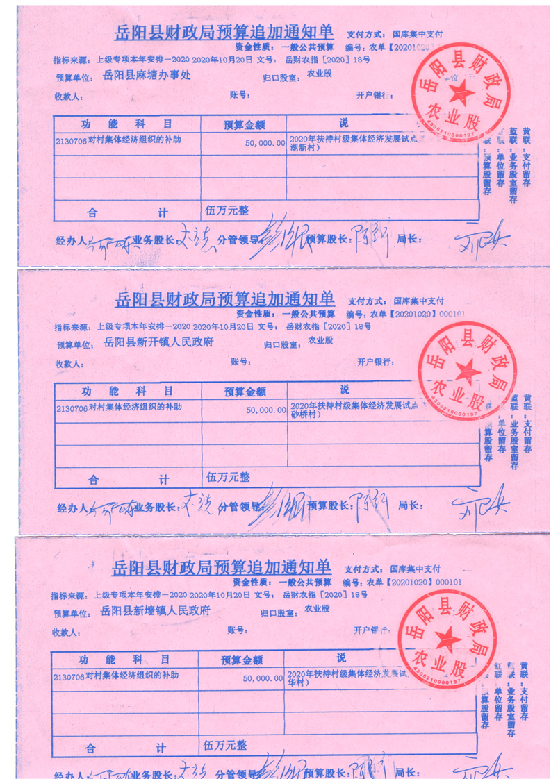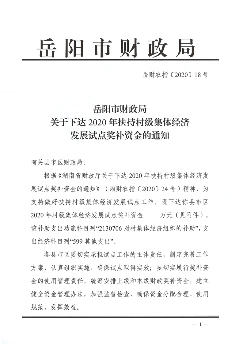 嶽陽縣財政局下達2020年扶持村級集體經濟發展試點市級獎補資金公開