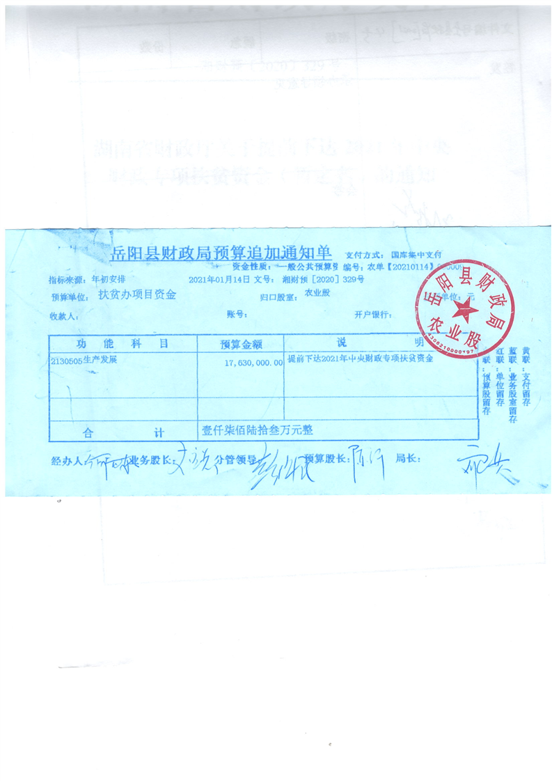 嶽陽縣財政局下達2021年中央財政專項扶貧資金公開公示