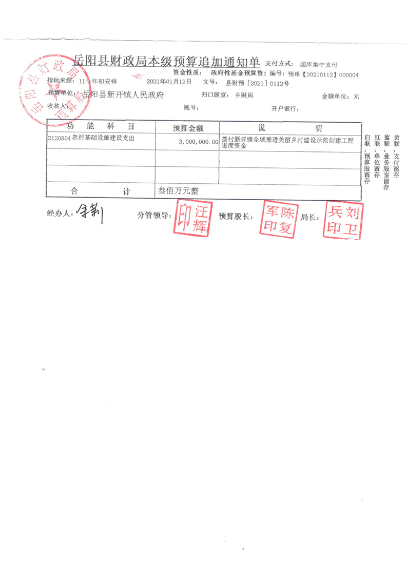 嶽陽縣下達新開鎮全域推進美麗鄉村建設示範創建工程進度資金公開公示