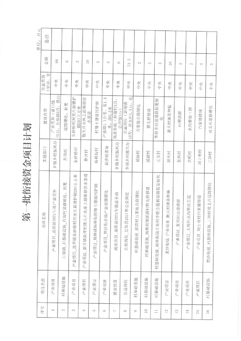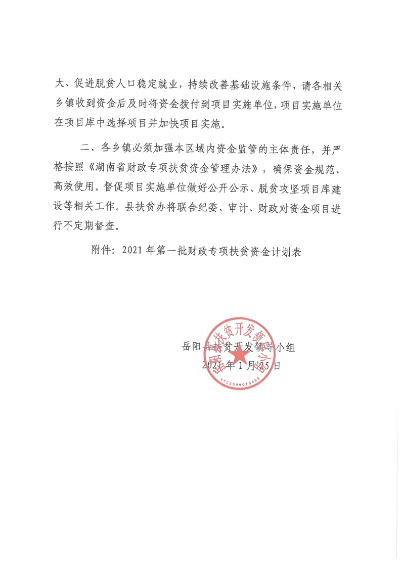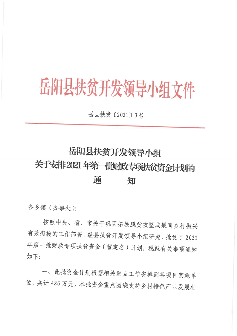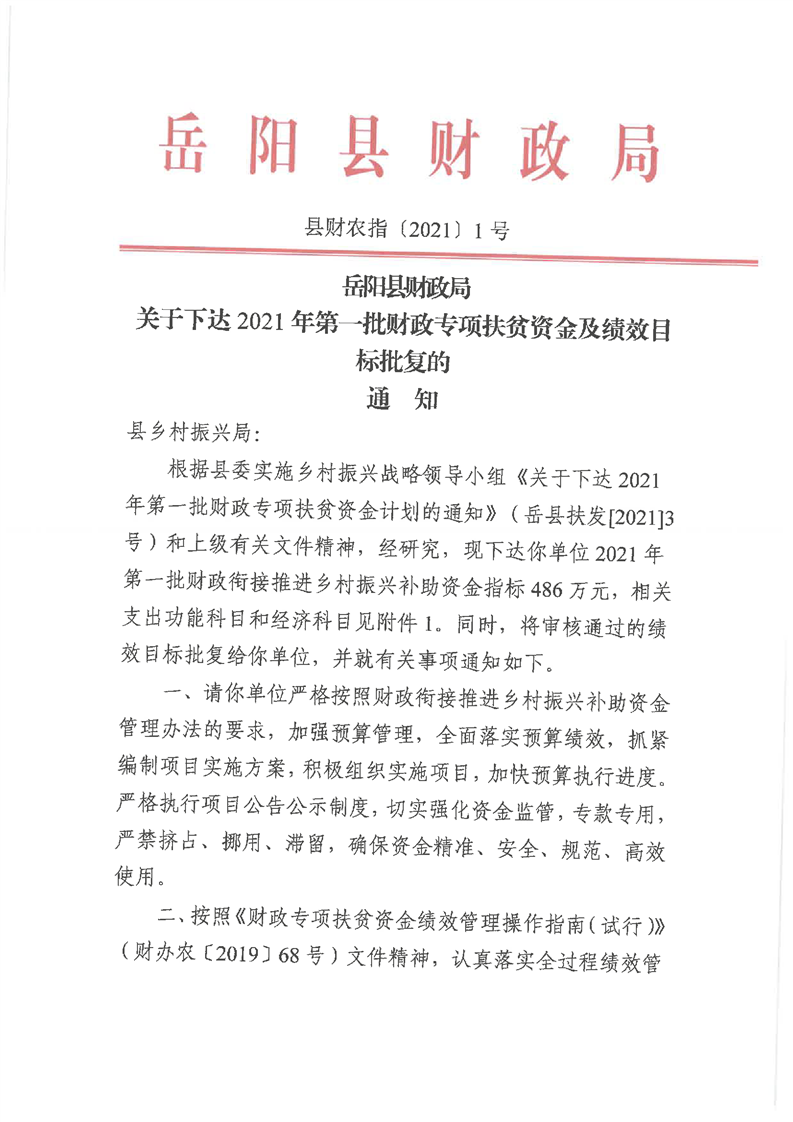 嶽陽縣財政局2021年關於下達第一批財政專項扶貧資金及績效目標批複公開公示