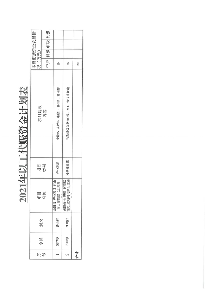 嶽陽縣財政局2021年關於下達以工代賑資金及績效目標批複公開公示