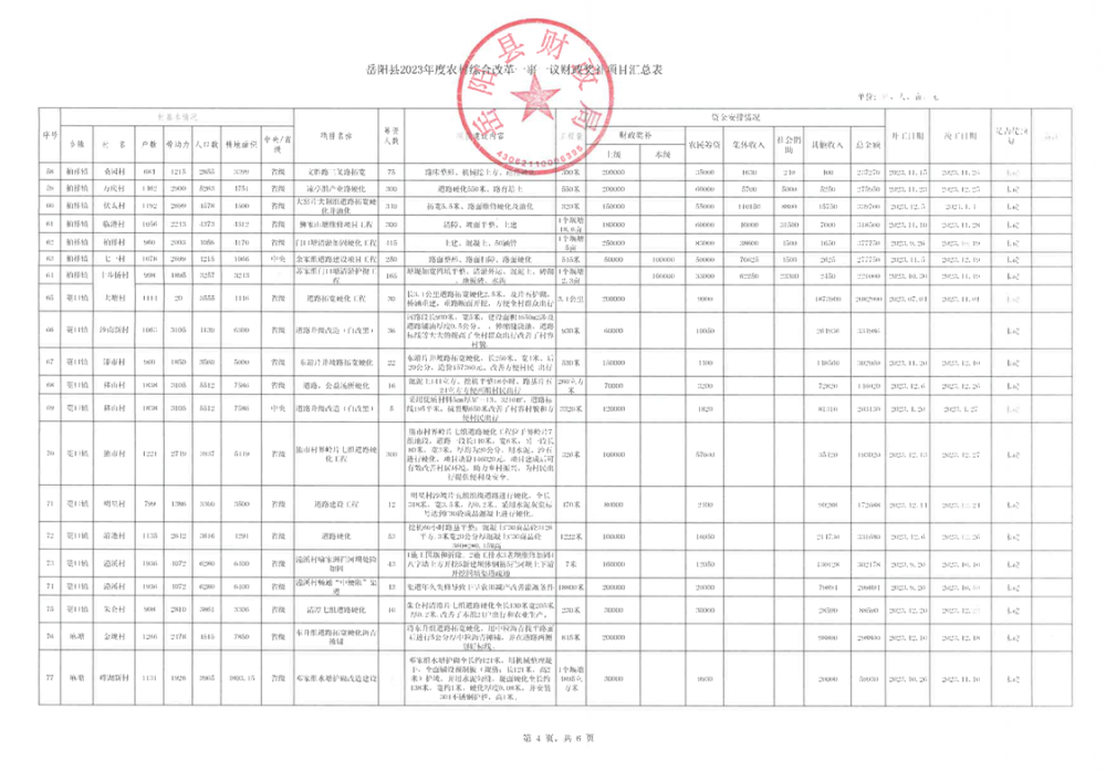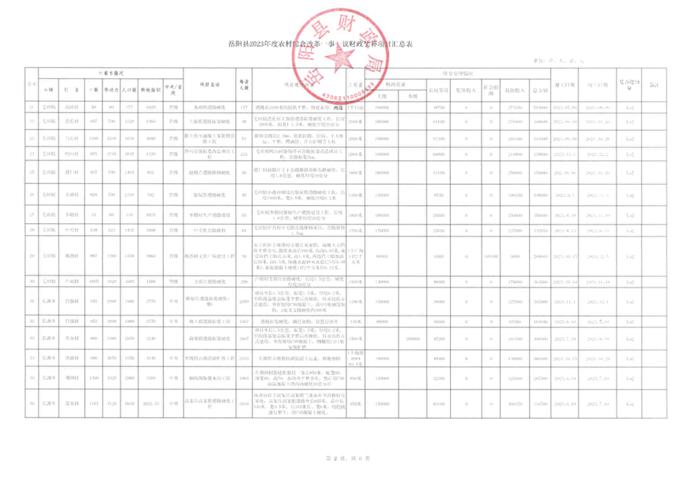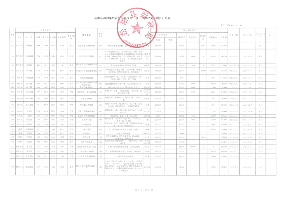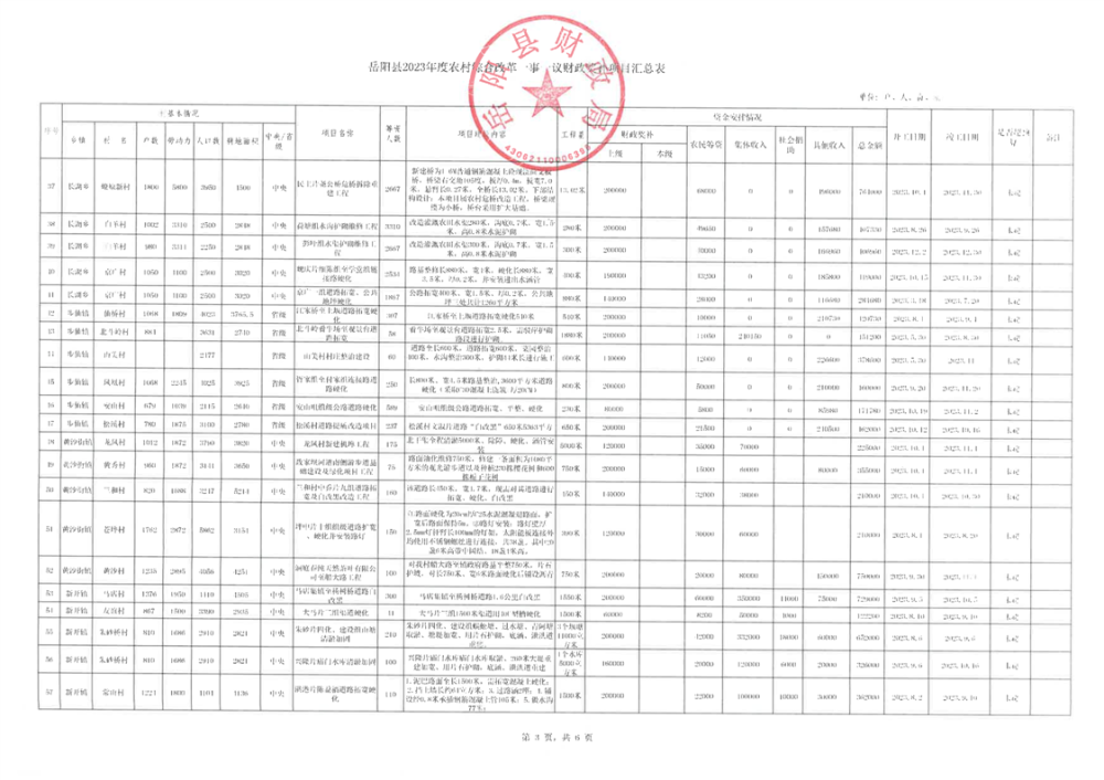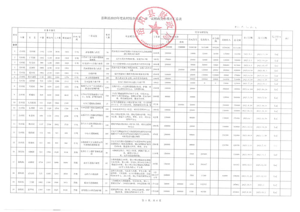 嶽陽縣2023年度農村綜合改革一事一議財政獎補項目匯總表