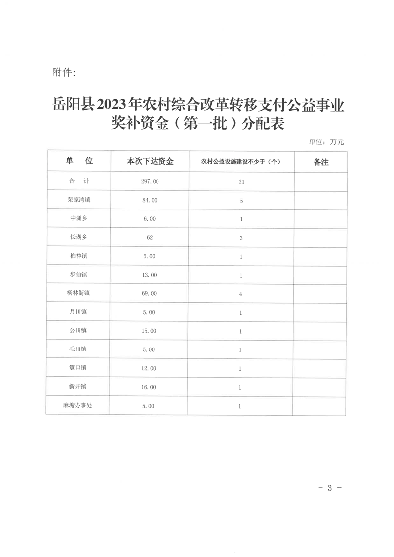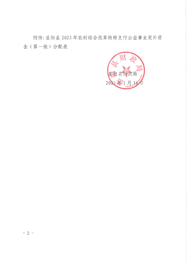 嶽陽縣財政局關於下達2023年農村綜合改革轉移支付資金(第一批)的通知(6號)