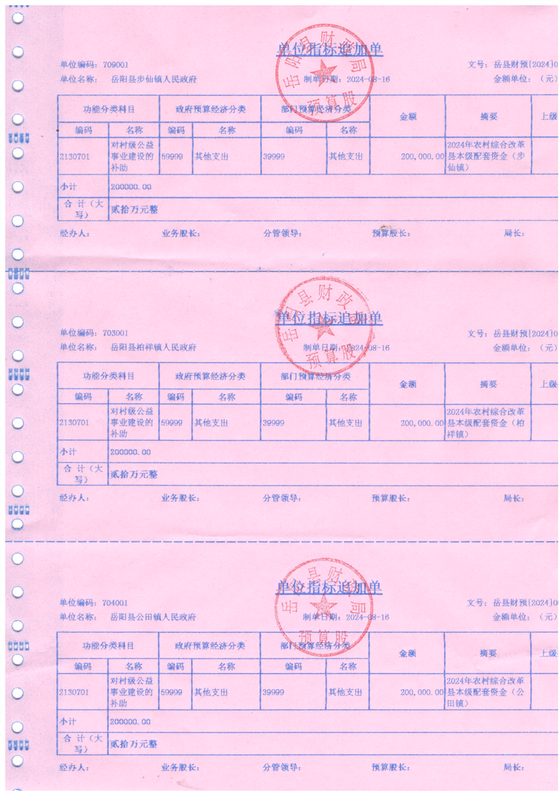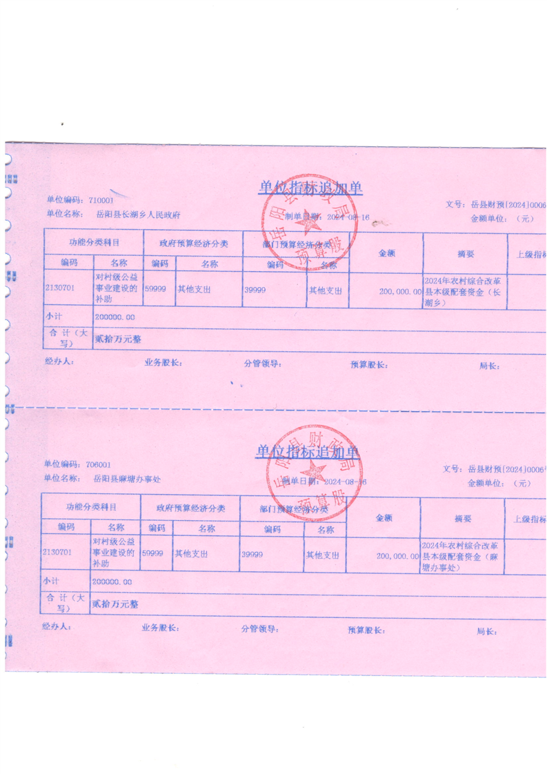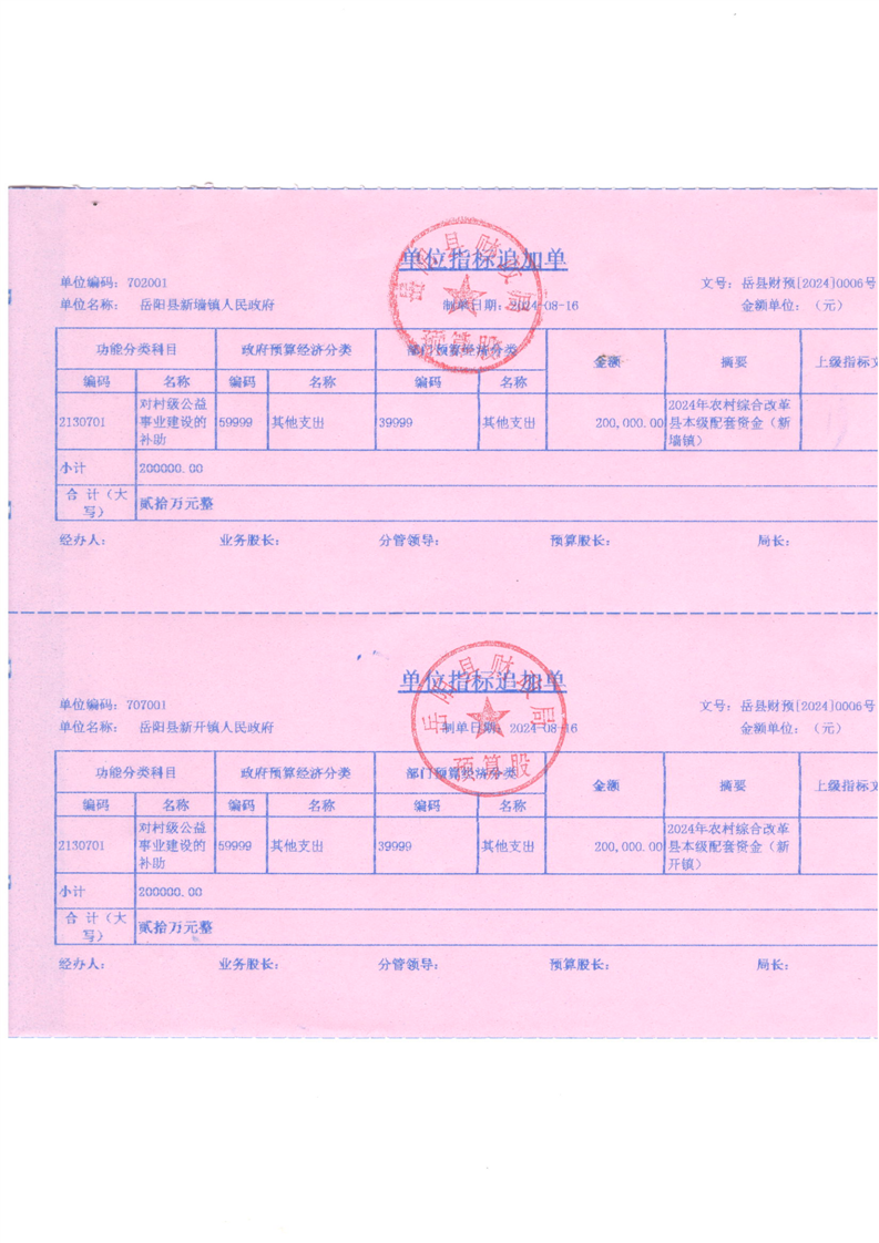 為支持做好2024年農村綜合改革轉移支付工作,經研究,現下達你鄉(鎮)2024年農村綜合改革轉移支付縣級配套資金 140萬 元,該指標列出功能分類科目“2130701對村級公益事業建設的補助”,支出經濟科目“599其他支出”。請按照縣級農村綜合改革轉移支付資金管理辦法和績效評價辦法,認真做好獎補資金分配、使用和管理工作,根據村級項目申報情況,分配到村、到項目,並切實加強資金使用監管,提高資金使用效益,確保年度績效目標如期完成。