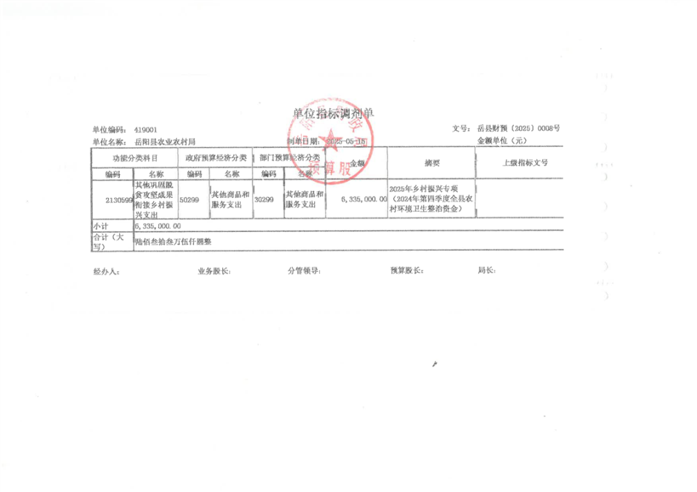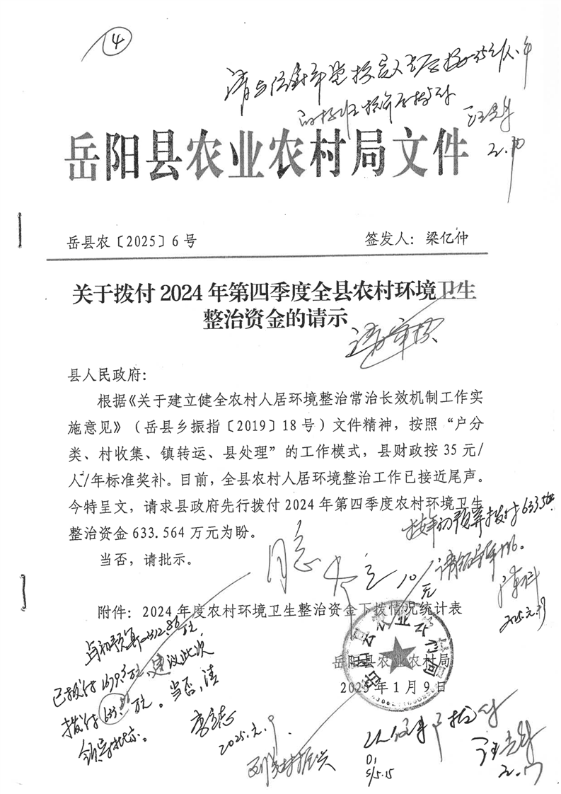 2024年第四季度全縣農村環境衛生整治資金