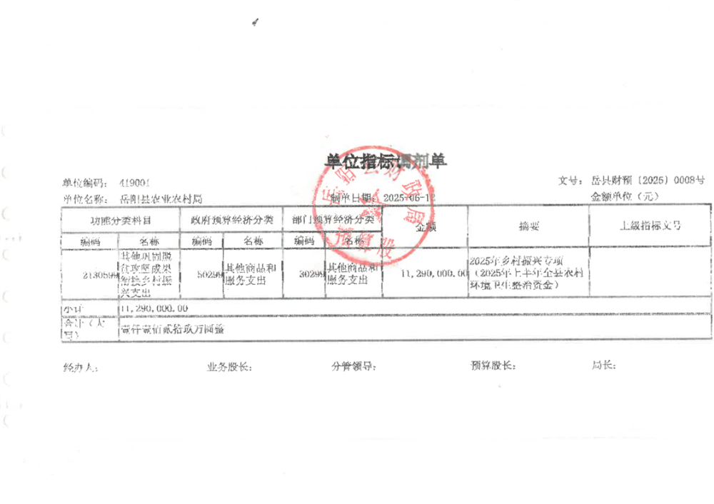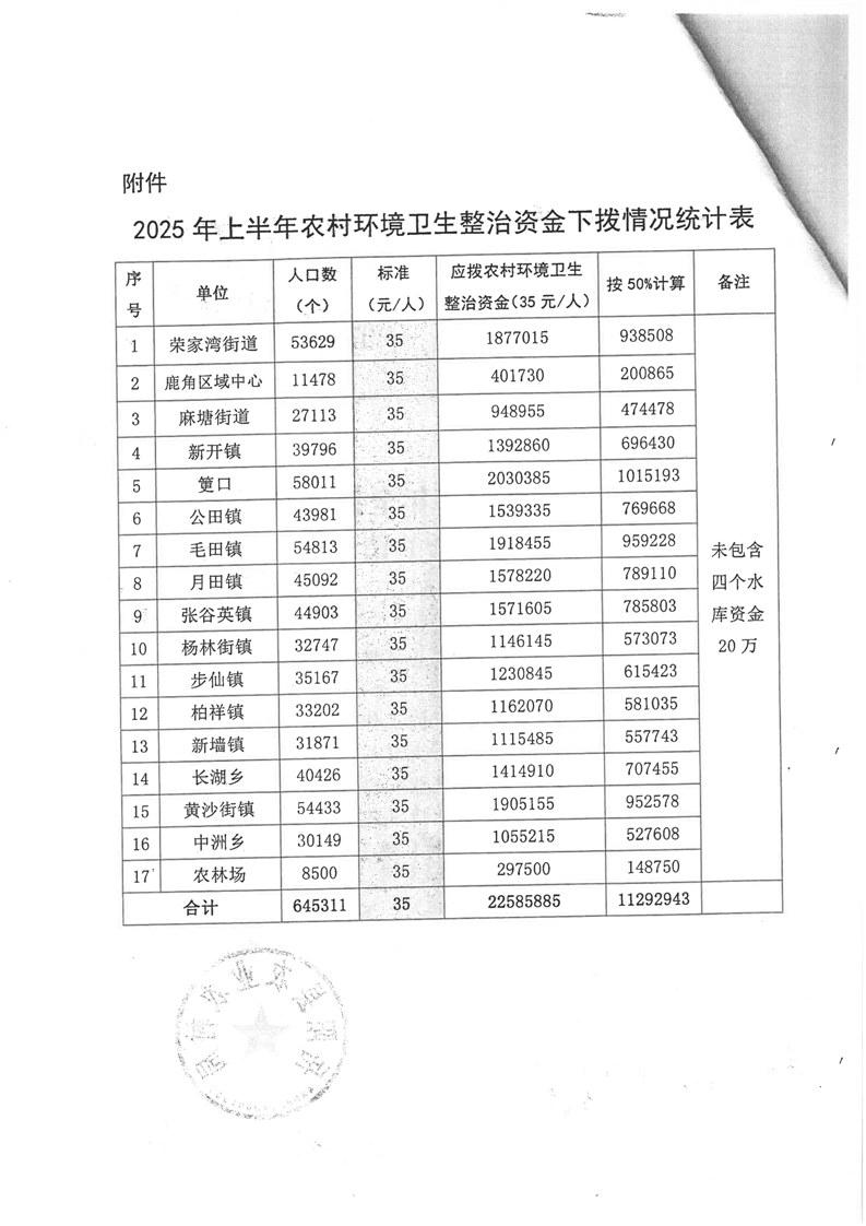 2025年上半年全縣農村環境衛生整治資金