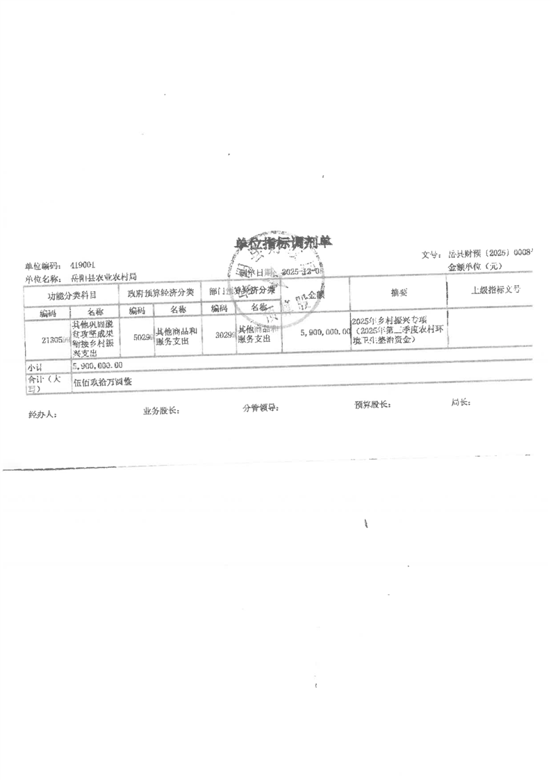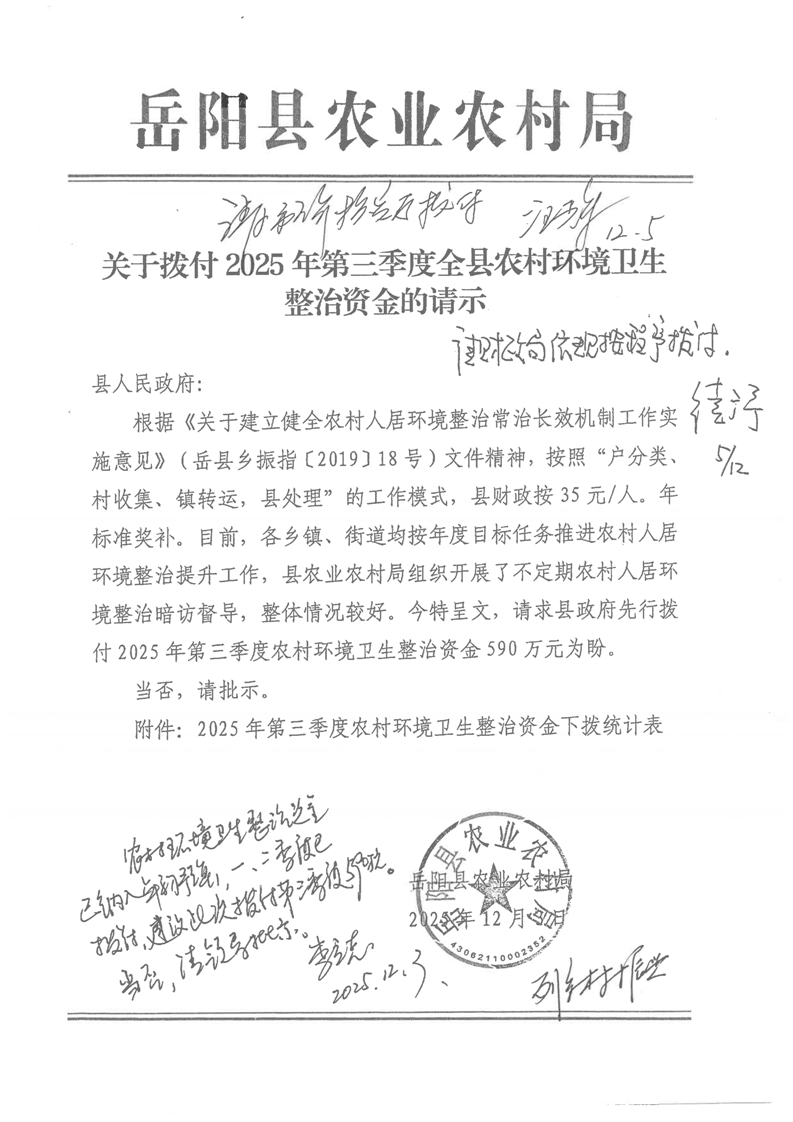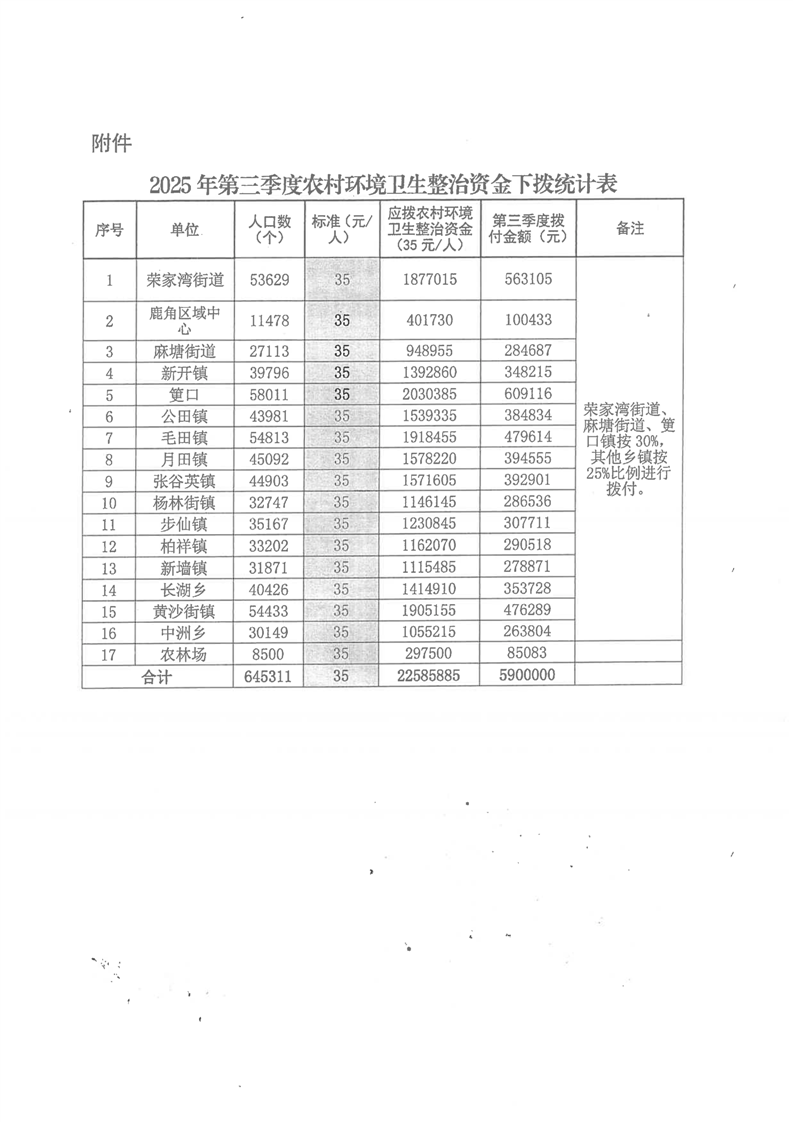 2025年第三季度農村環境衛生整治資金